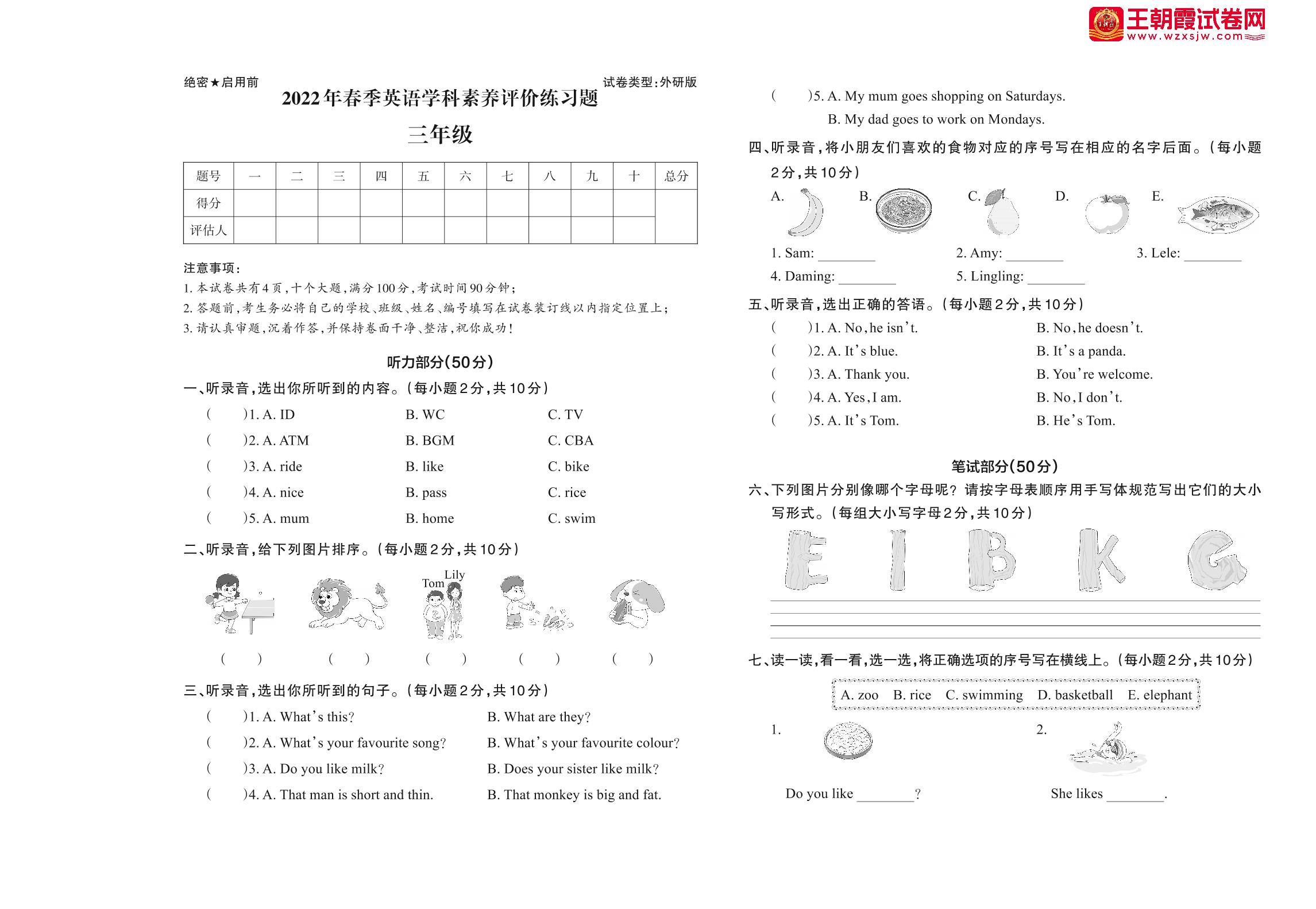 河南省洛阳市栾川县2022—2023学年下学期期中教学质量检测试题三年级英语(外研版)