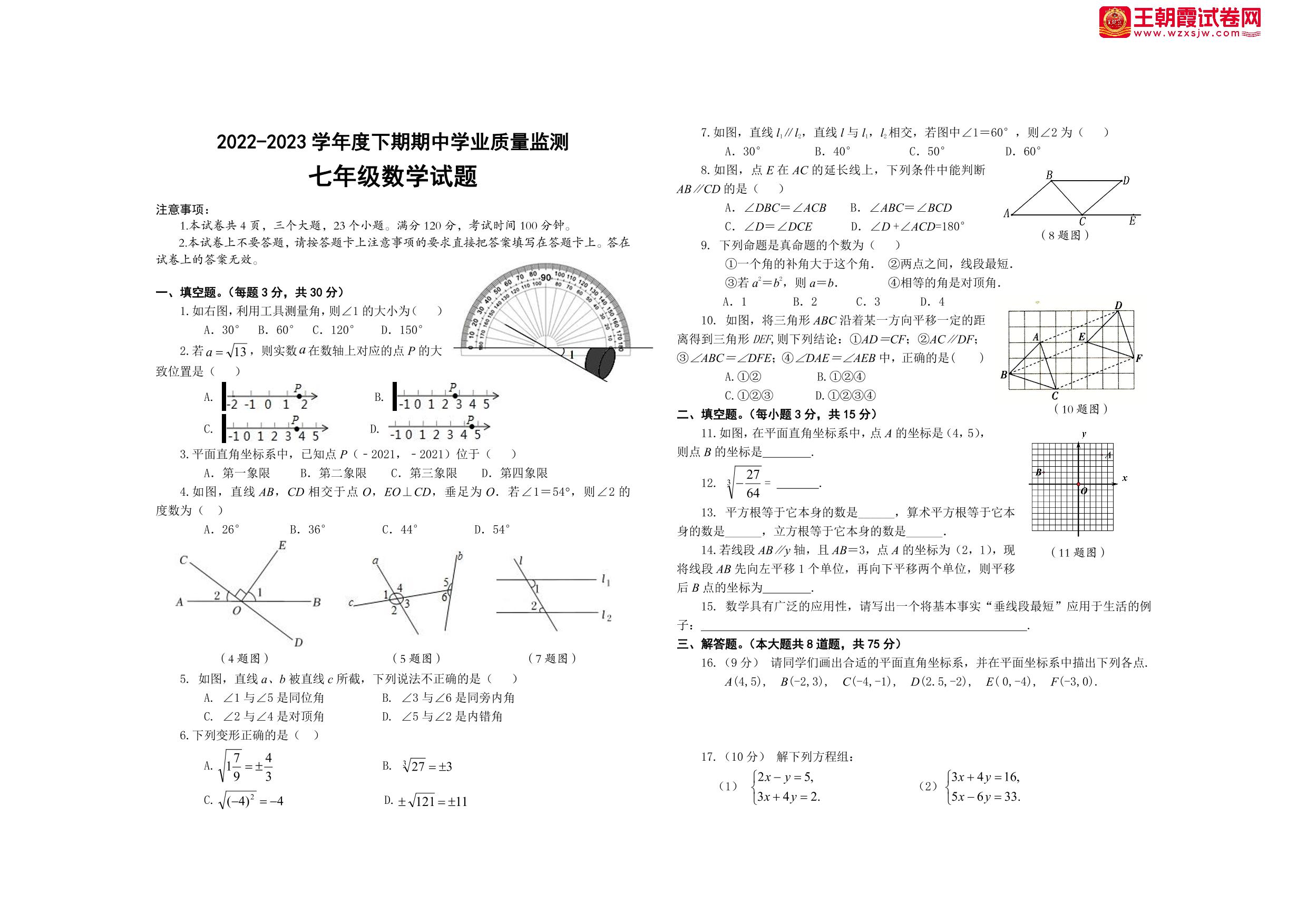 河南省信阳市息县2022—2023学年下学期期中考试试题七年级数学(人教版)