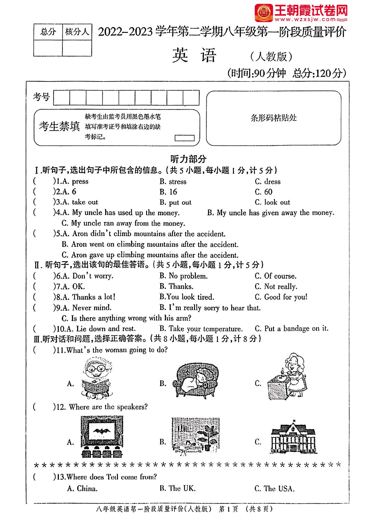 河北省沧州市孟村回族自治县王史中学2022-2023学年第二学期第一阶段质量评价3月月考八年级英语(人教版)