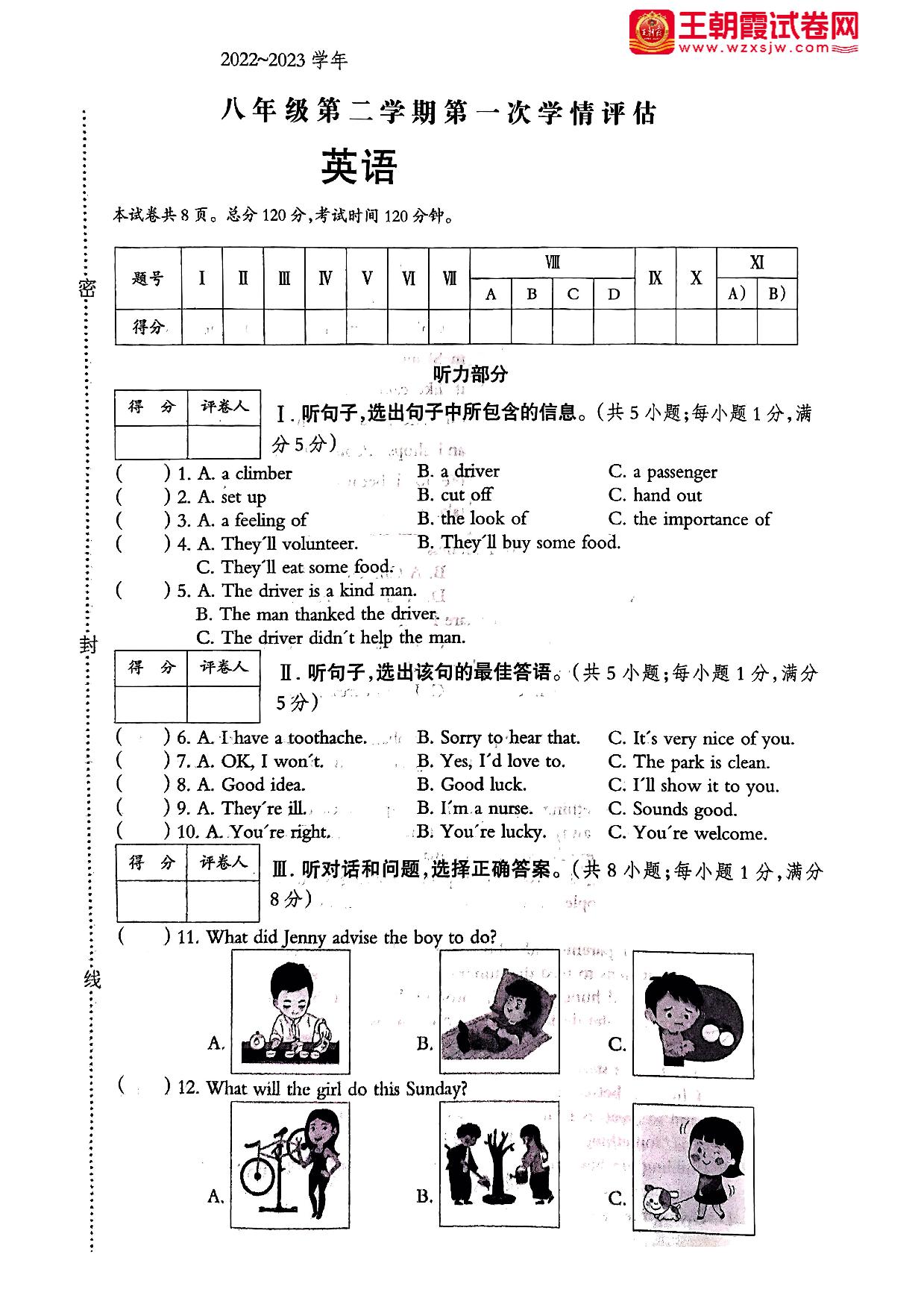 河北省邢台市威县第三中学2022-2023学年第二学期第一次学情评估3月月考八年级英语(人教版)【无听力音频】