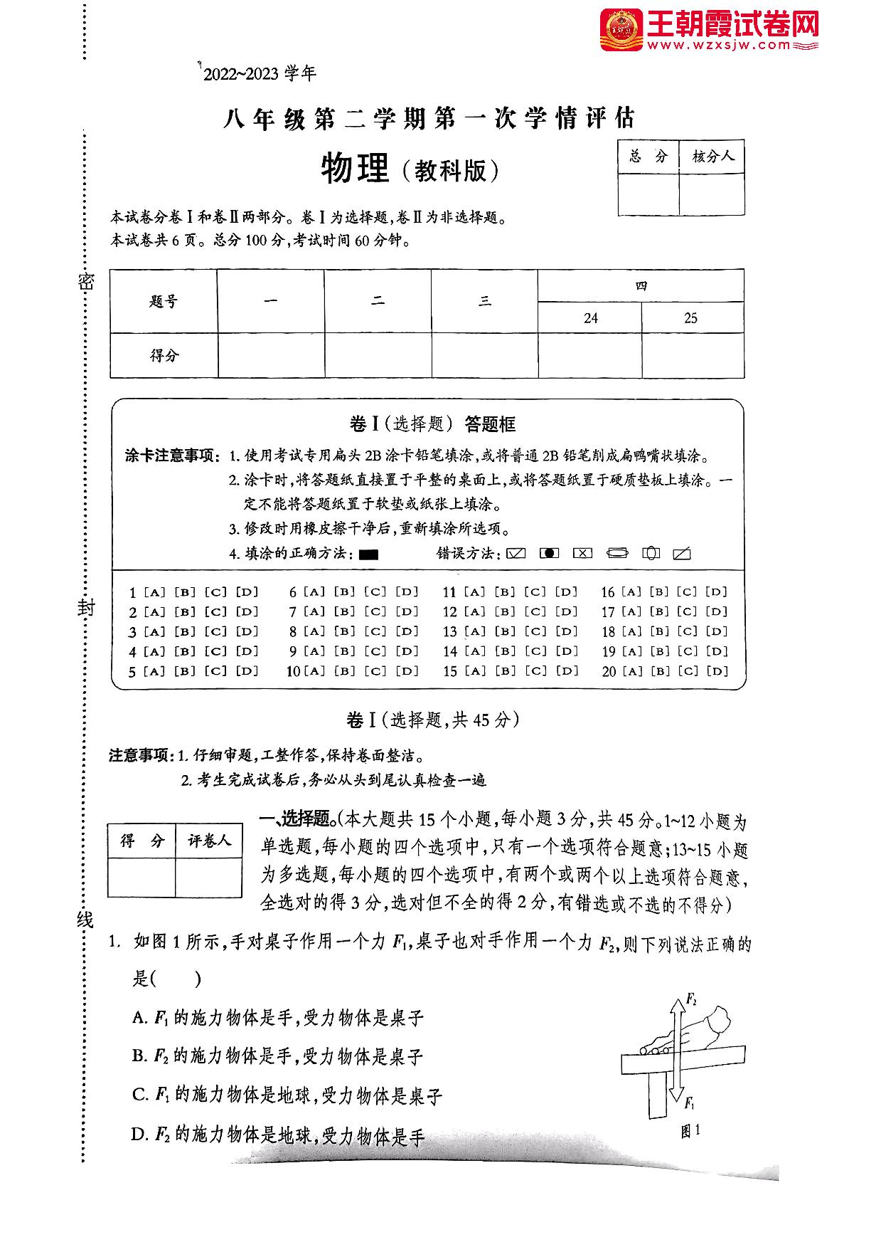 河北省邢台市威县第三中学2022-2023学年第二学期第一次学情评估3月月考八年级物理(教科版)