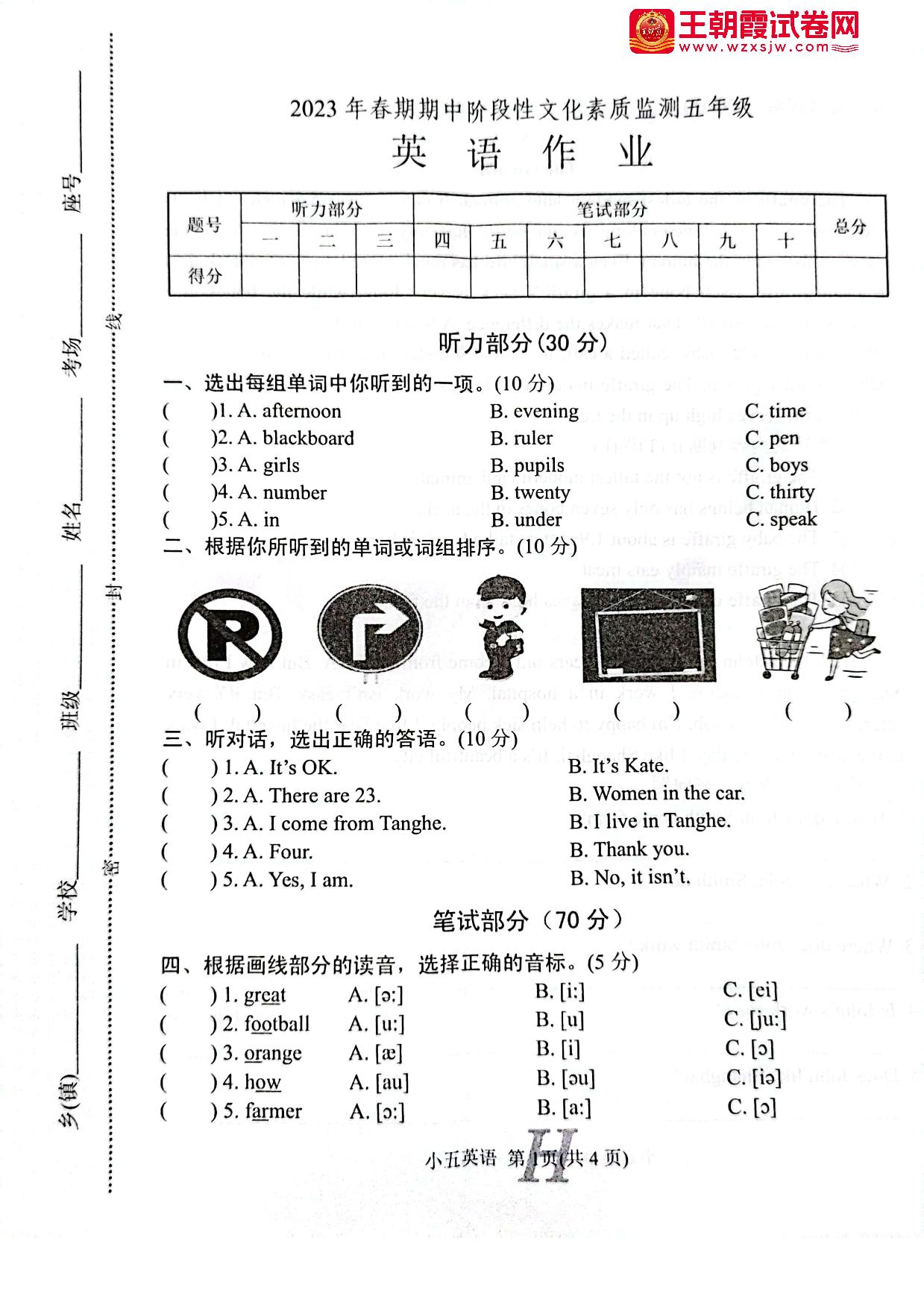河南省南阳市唐河县2022—2023学年下学期期中试题五年级英语(科普版)【无听力音频】