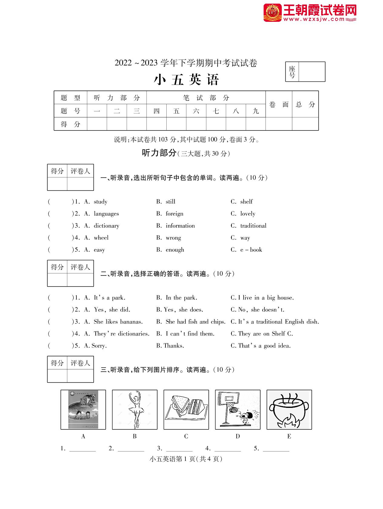河南省平顶山市郏县2022—2023学年下学期期中试题五年级英语(外研版)