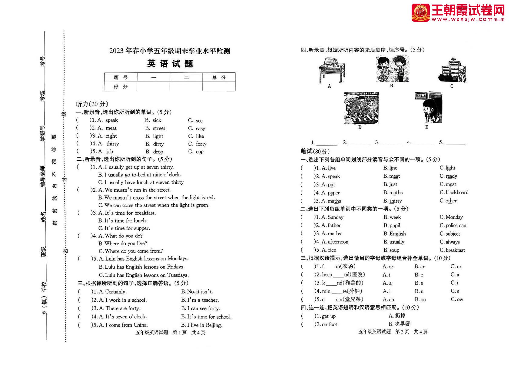 河南省驻马店市上蔡县2022—2023学年下学期期末试题五年级英语(北师版)