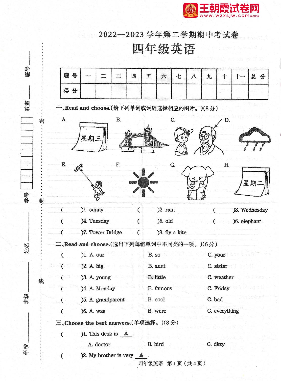 河南省周口市太康县2022—2023学年下学期期中试题四年级英语(外研版)【无听力音频】