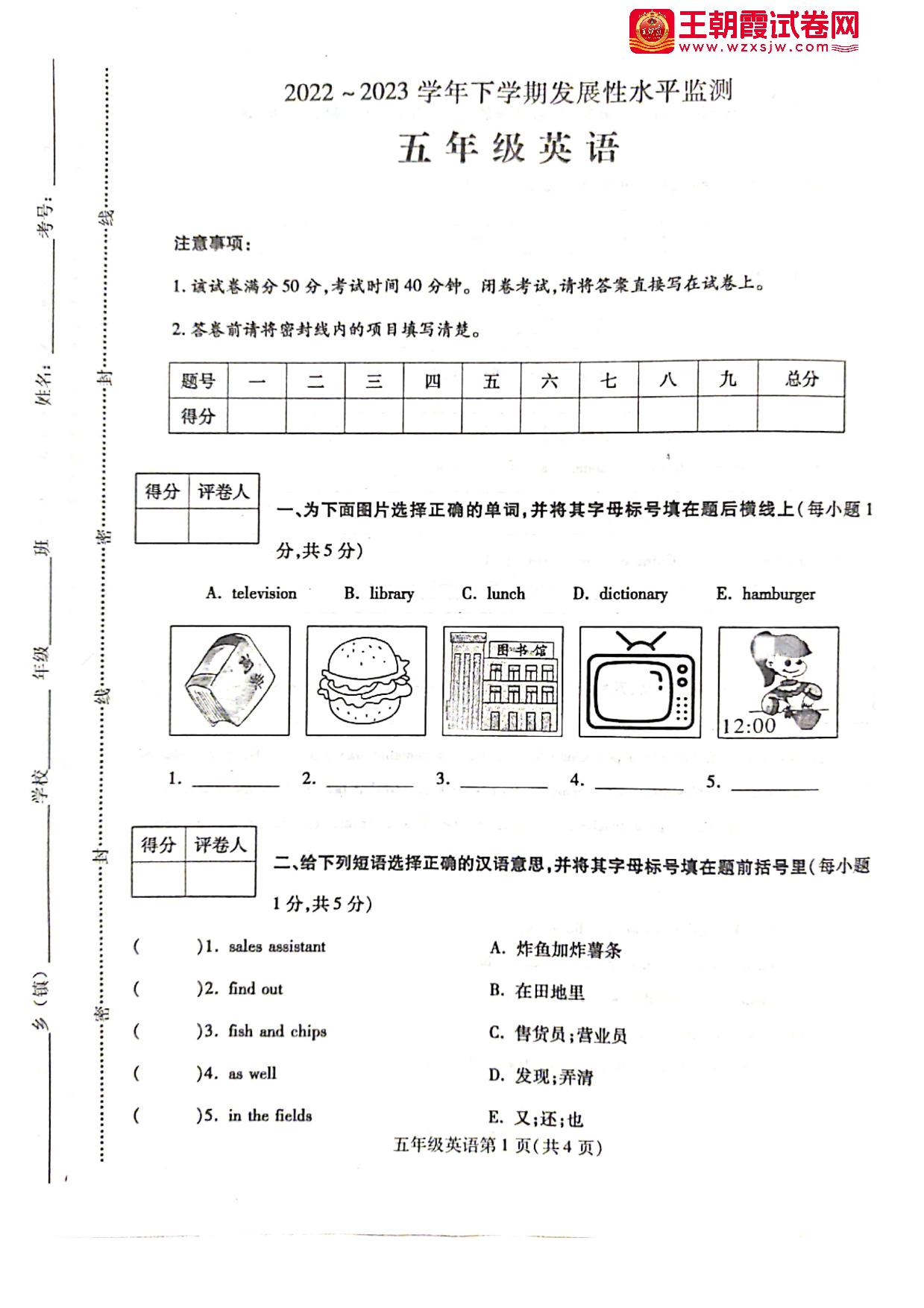 河南省漯河市舞阳县2022—2023学年下学期期末考试试题五年级英语(外研版)【无听力音频】