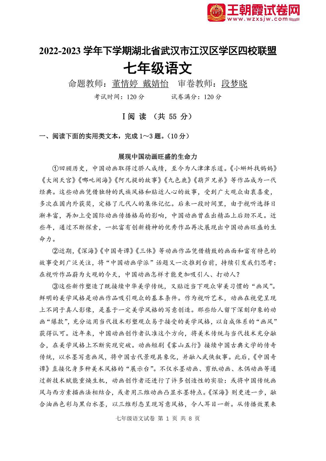 湖北省武汉市江汉区四校联盟2022-2023学年度下学期5月考七年级语文试题(人教版)