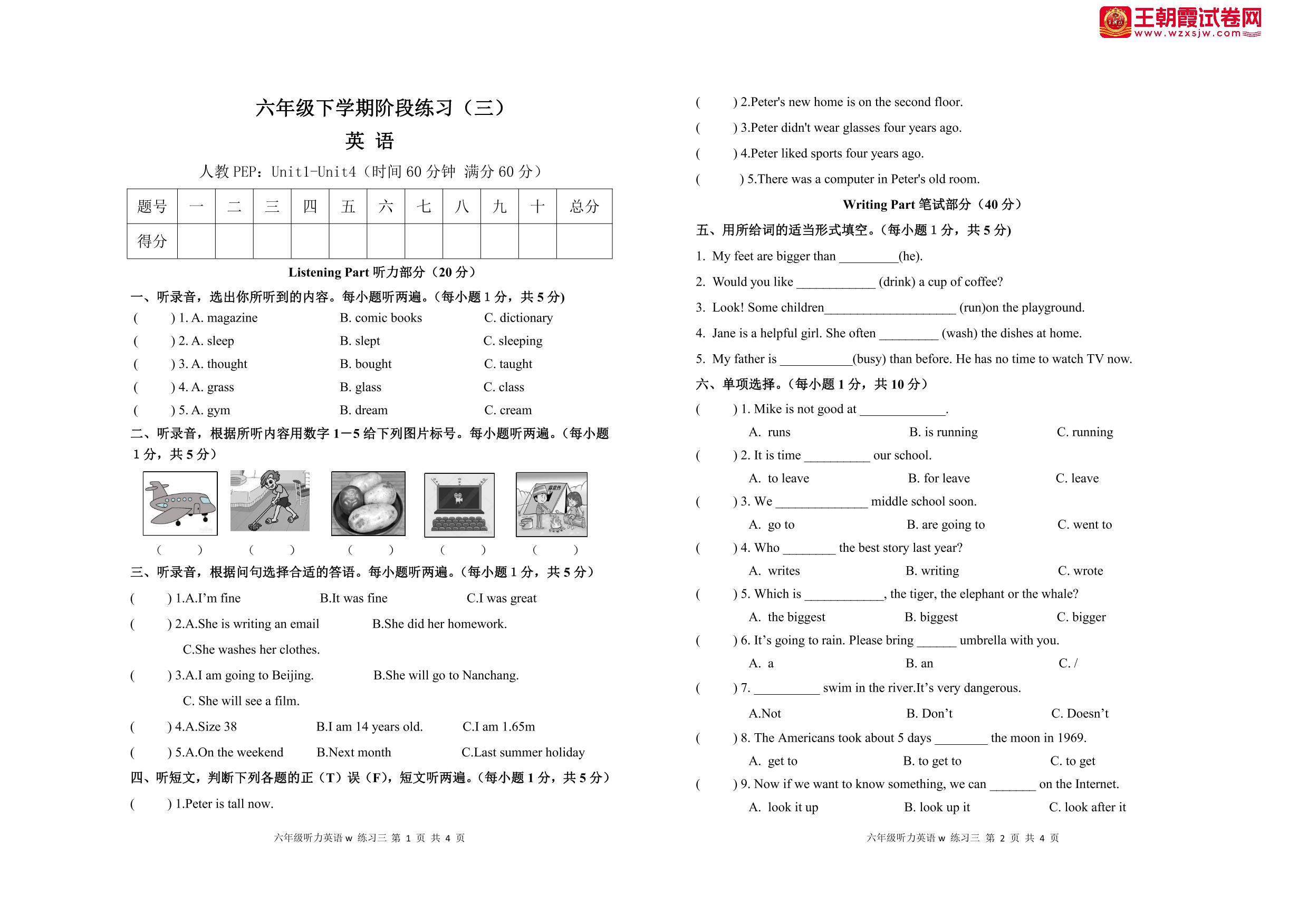 江西省宜春市万载县2022-2023学年下学期期中阶段练习六年级英语(人教PEP版)【无听力音频】