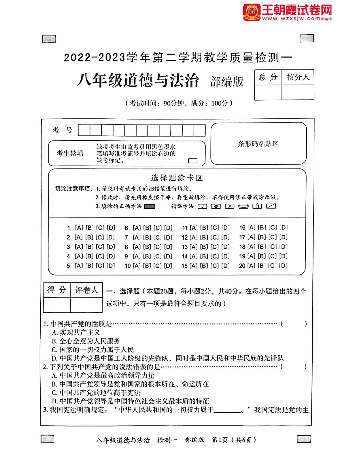 河北省沧州市南皮县桂和中学2022-2023学年第二学期教学质量检测一第一次月考试题八年级道德与法治(人教版)