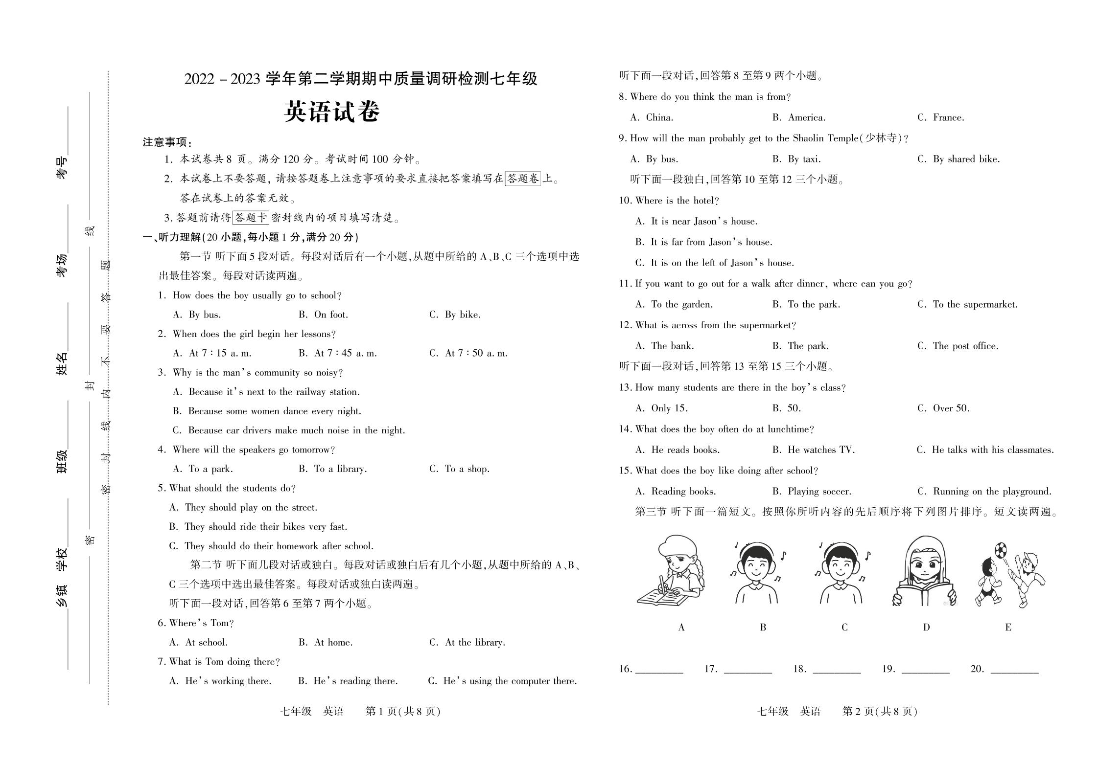 河南省洛阳市伊川县2022—2023学年下学期期中考试试题七年级英语(新课标版)【无听力音频】
