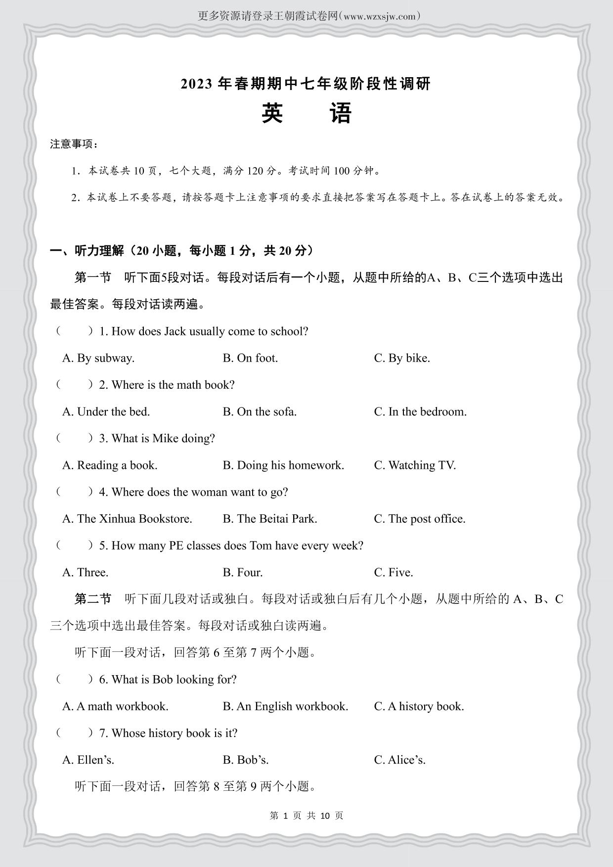 河南省南阳市方城县2022—2023学年下学期期中考试试题七年级英语(新课标版)