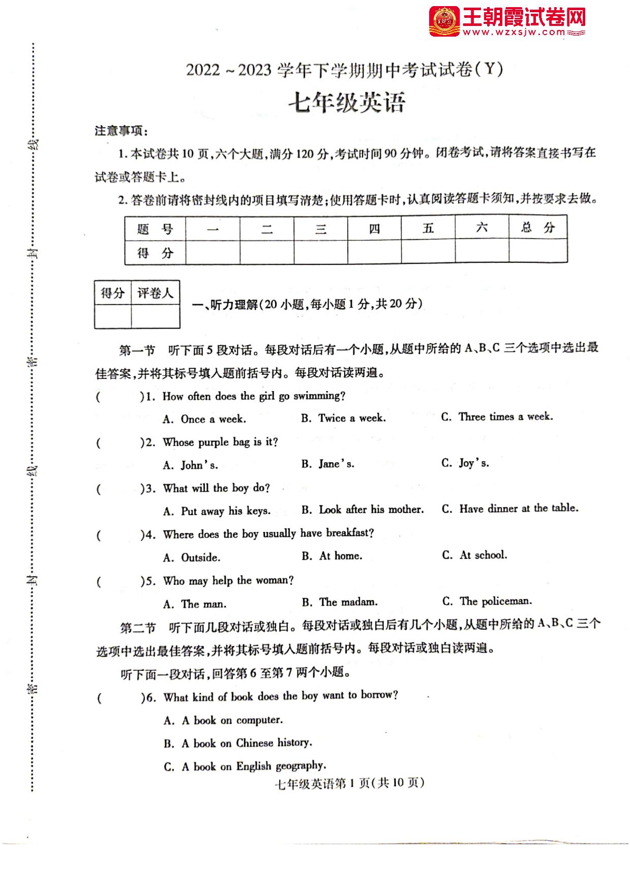 河南省漯河市舞阳县2022—2023学年下学期期中考试试题七年级英语(新课标版)【无听力音频】