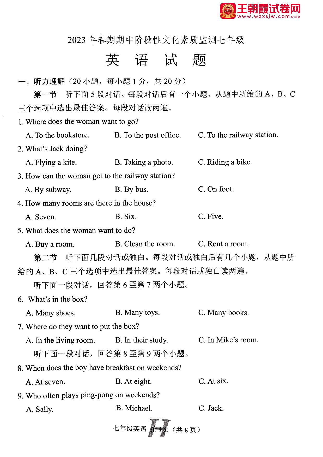 河南省南阳市唐河县2022—2023学年下学期期中考试试题七年级英语(新课标版)