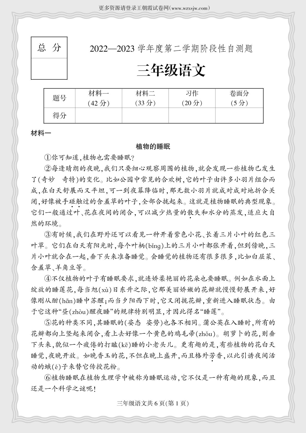 三年级语文人教版下册期中卷