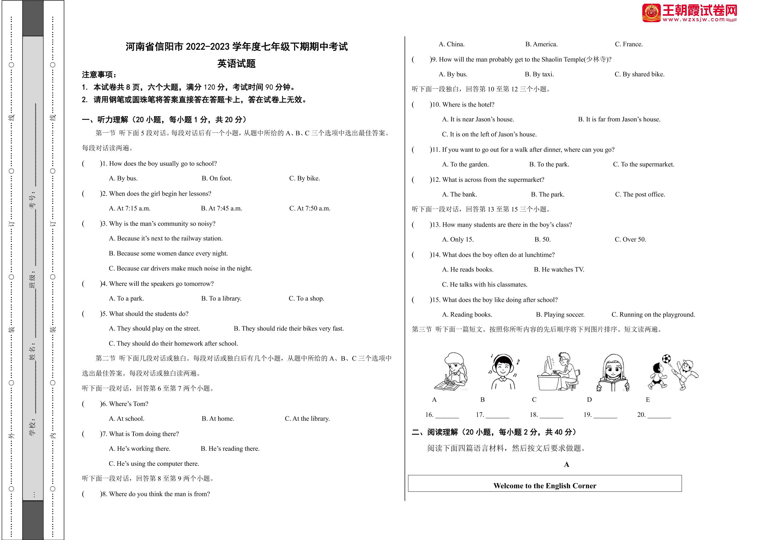 河南省信阳市2022—2023学年下学期期中学情调研考试七年级英语(新课标版)