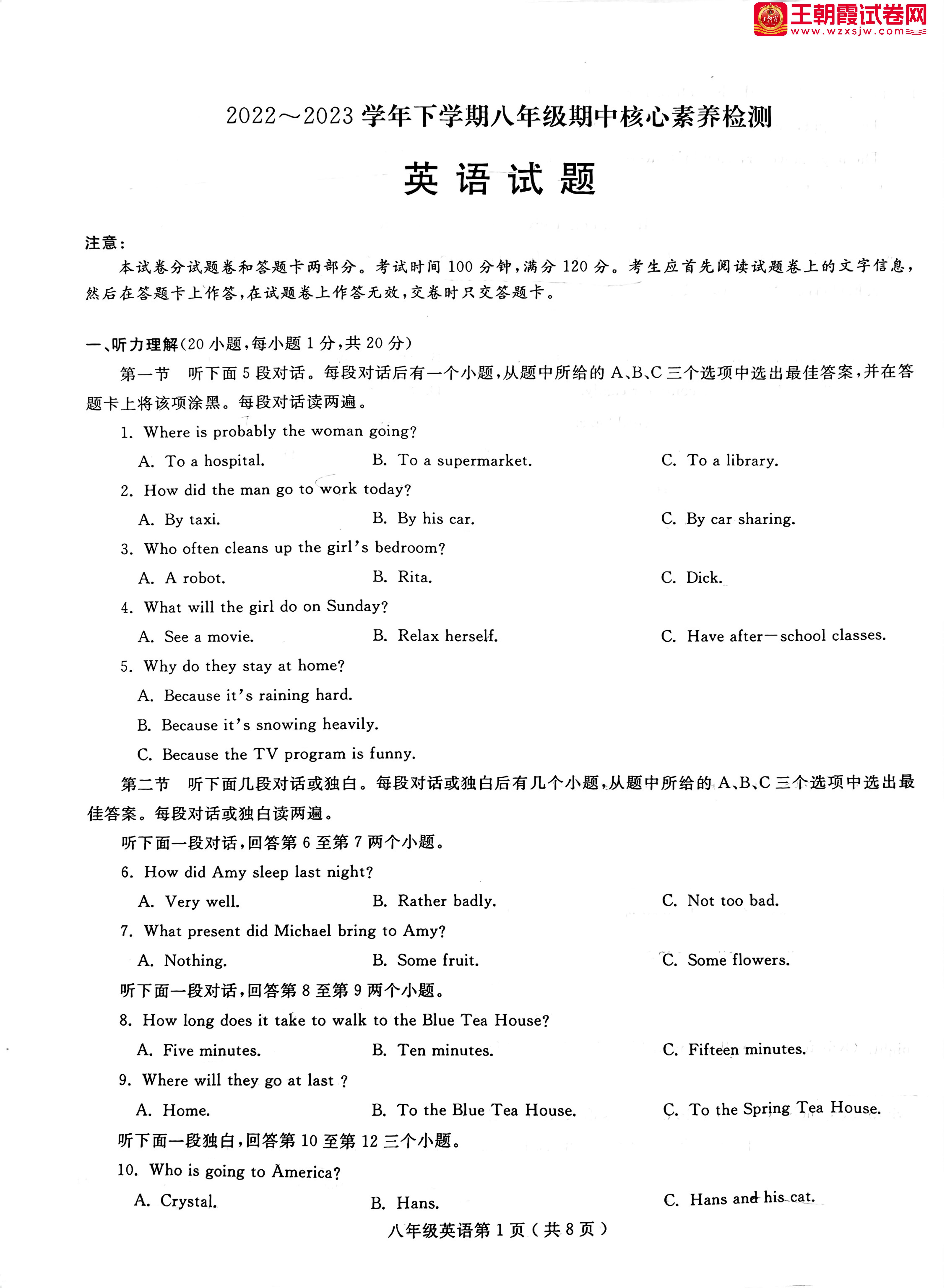 河南省周口市项城市五校联考2022—2023学年下学期期中考试试题八年级英语(人教版)【无听力音频】