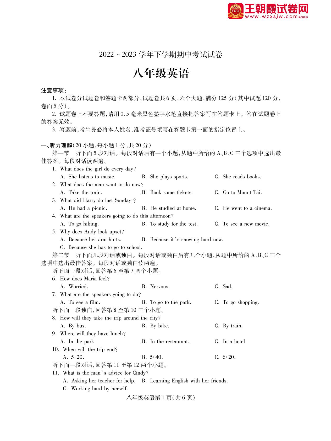 河南省平顶山市郏县2022—2023学年下学期期中试题八年级英语(新课标版)【无听力音频】
