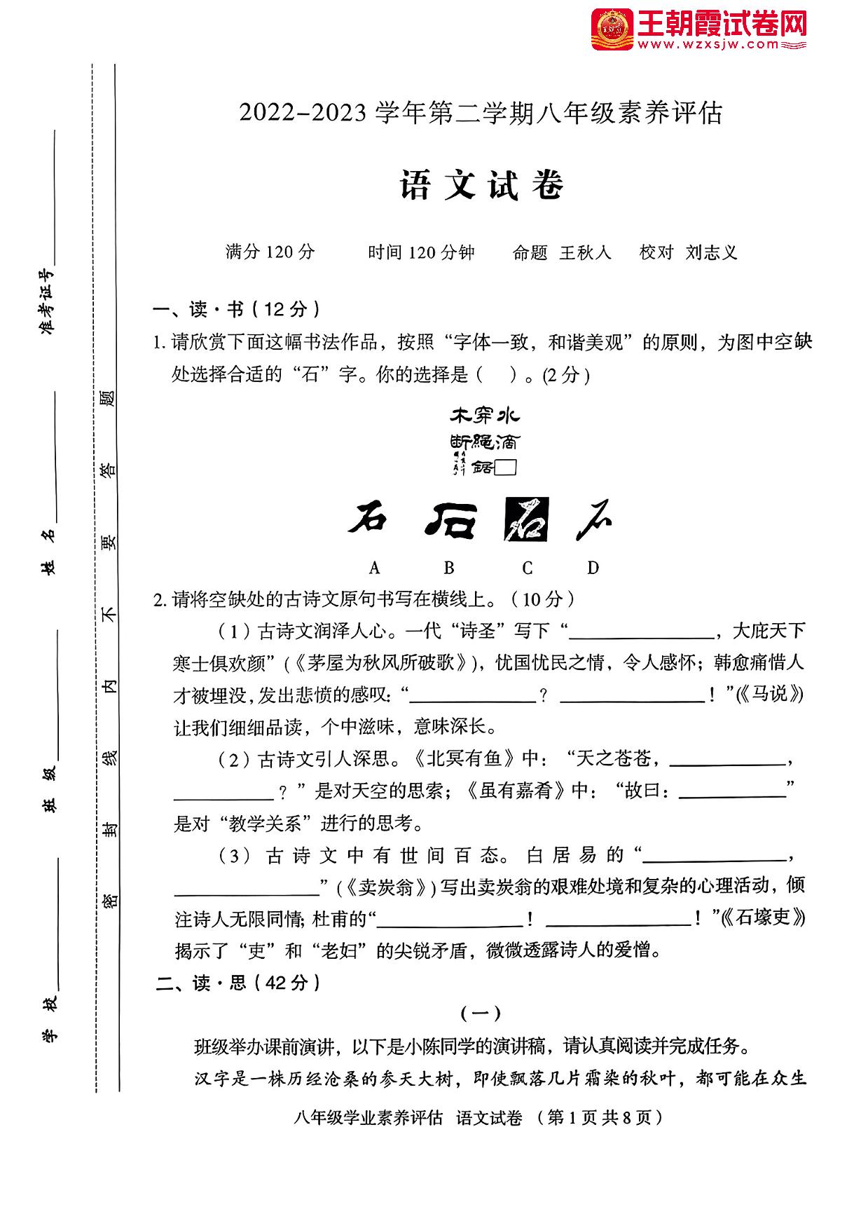 山西省大同市大同一中北校2022-2023学年下学期5月月考试卷八年级语文(人教版)