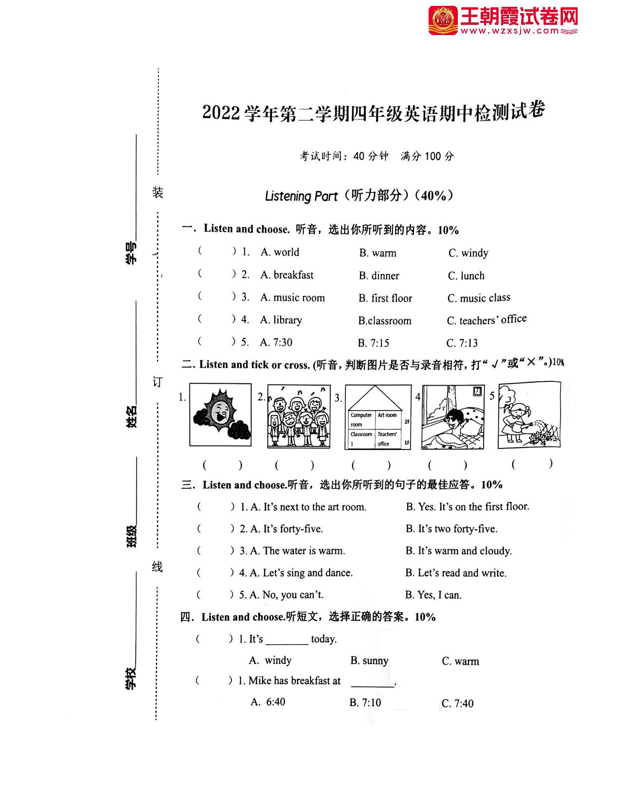 浙江省杭州市余杭区2022-2023学年下学期4月期中试题四年级英语(PEP版)【无听力音频】