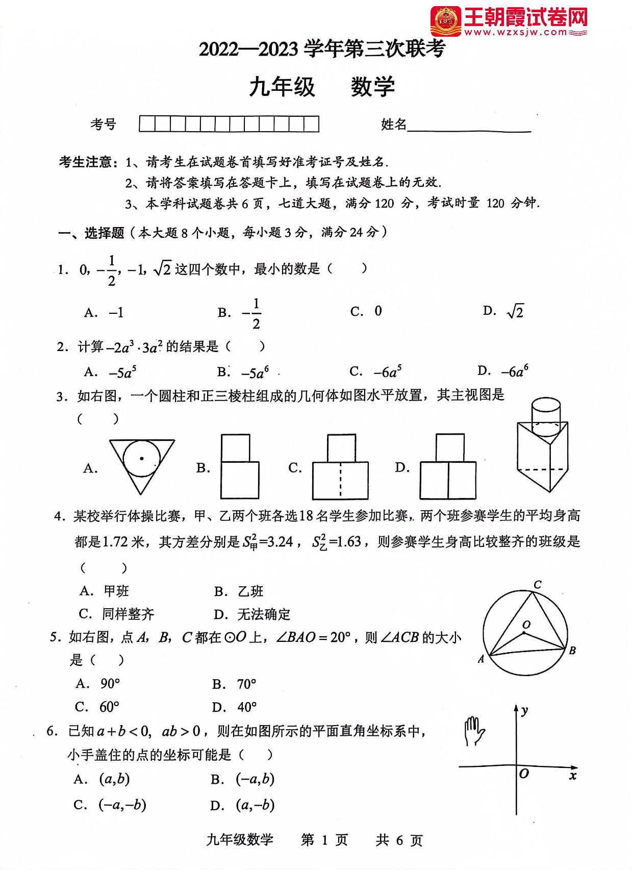 湖南省常德市2022-2023学年下学期第三次联考(期中)试题九年级数学(湘教版)