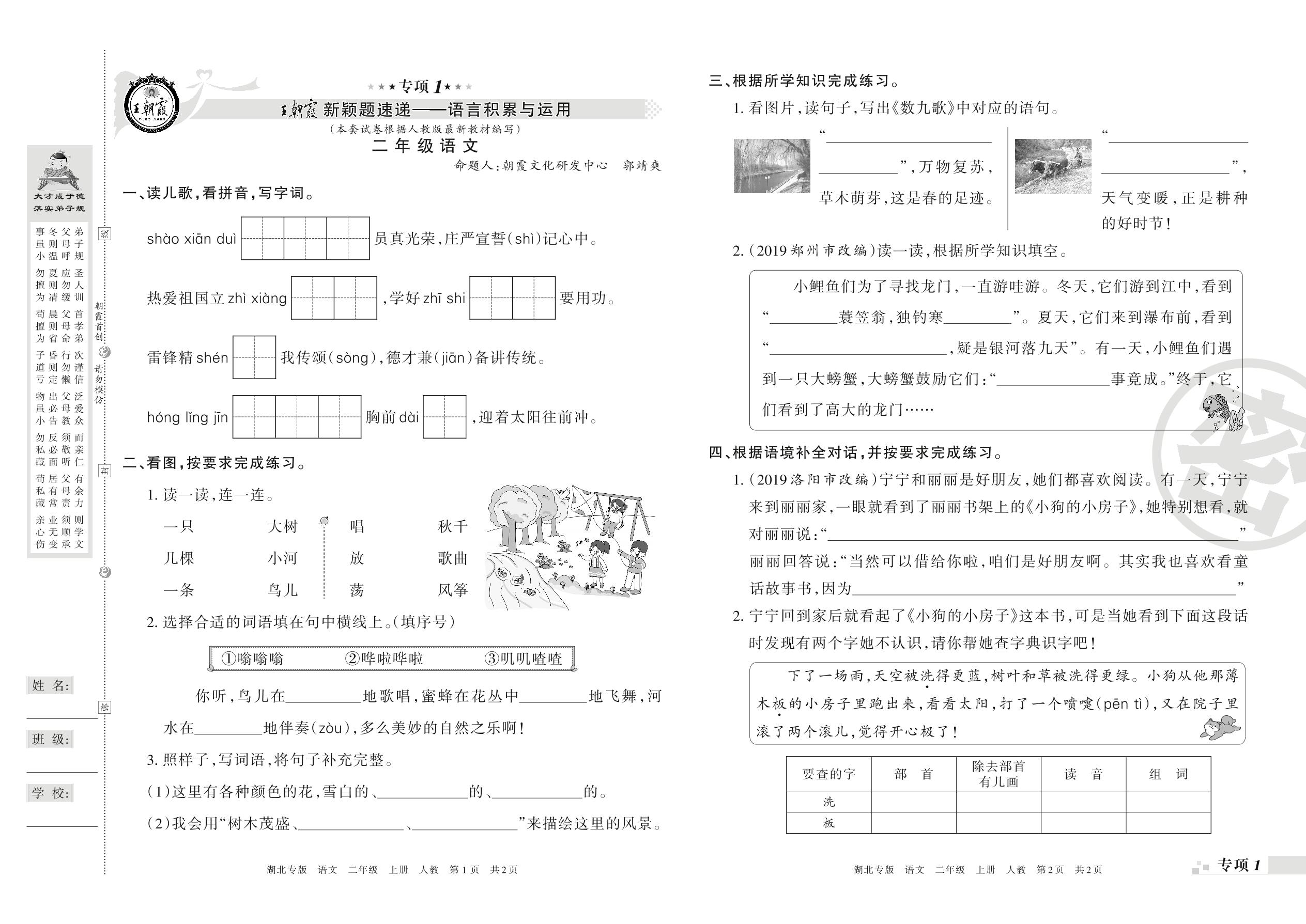 王朝霞期末专项卷——语言积累与运用、非连续性文本阅读二年级上册语文(人教版)_R21080164952【0】