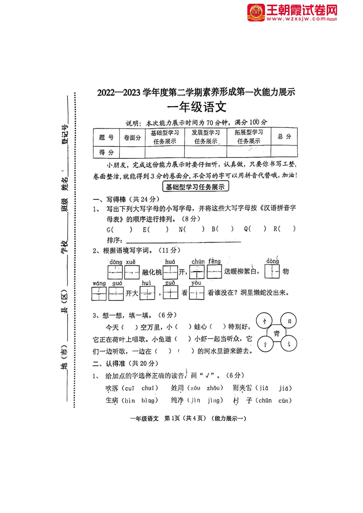 山西省临汾市襄汾县2022-2023学年下学期3月月考试题一年级语文(人教版)