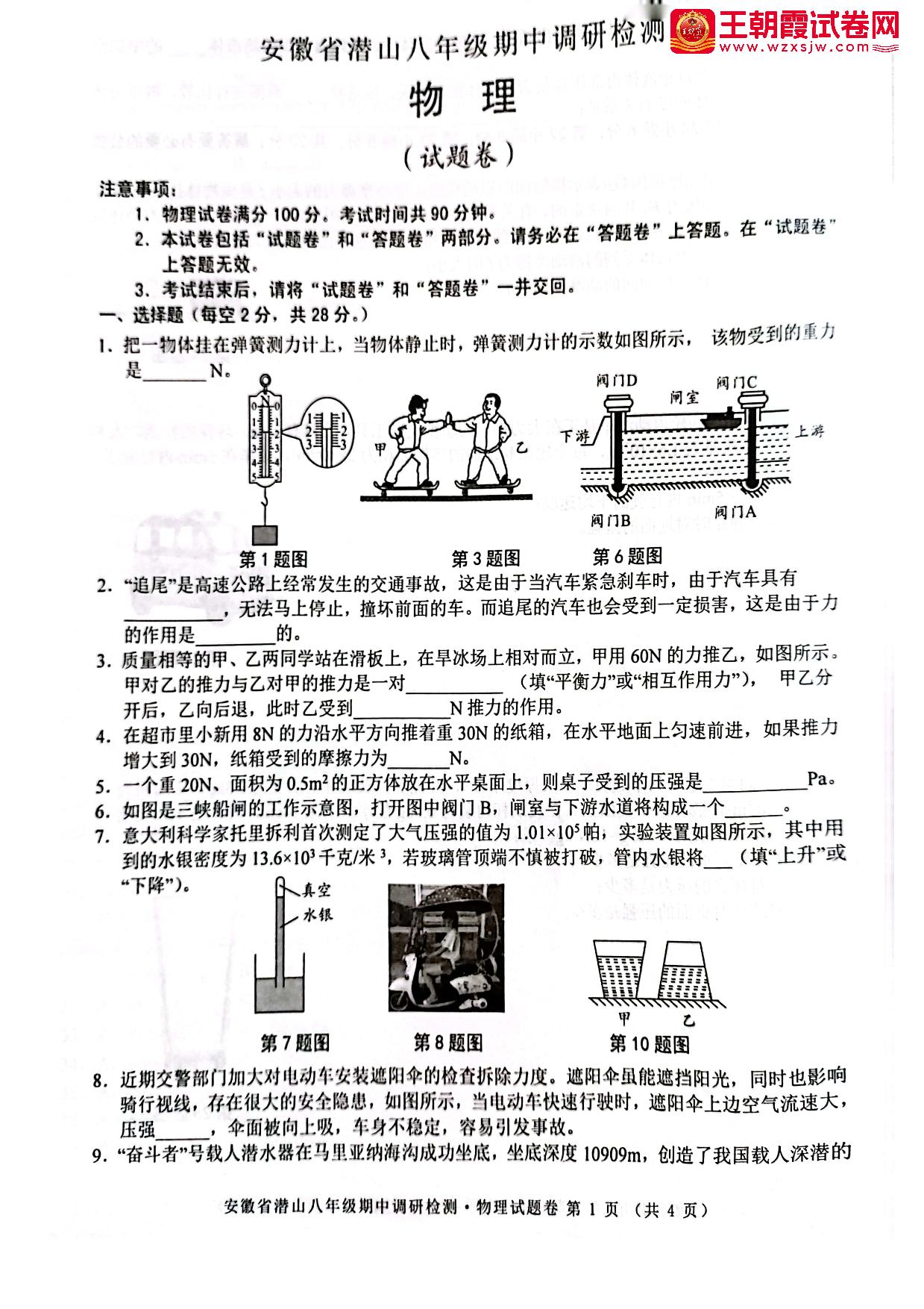 安徽省安庆市潜山市2022-2023学年下学期期中调研检测八年级物理(人教版)