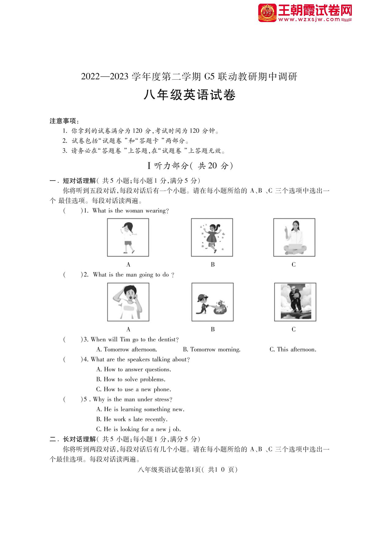 安徽省蚌埠市2022-2023学年度第二学期G5联动教研期中调研八年级英语(人教版)