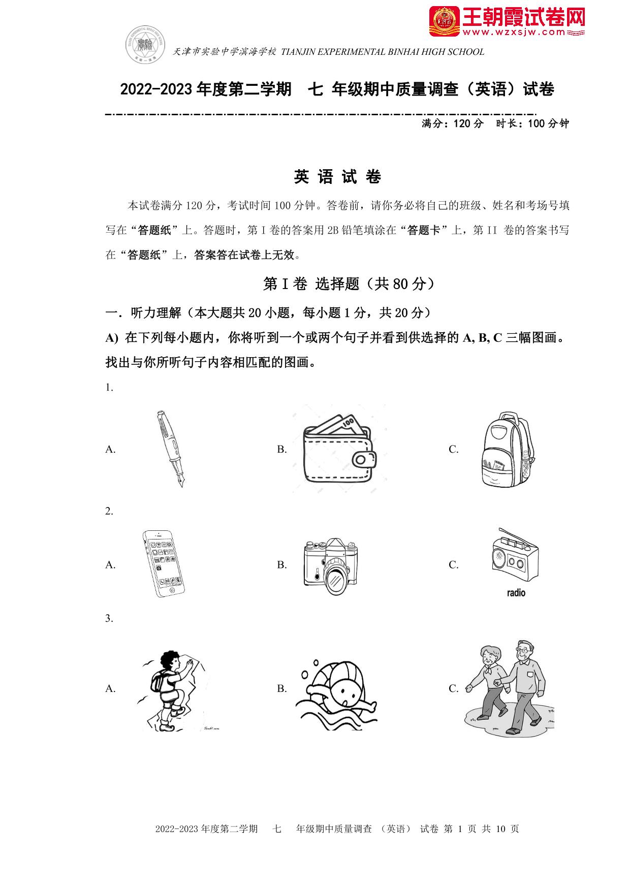 天津市实验中学滨海学校2022-2023学年第二学期期中考试试题七年级英语(外研版)【无听力音频】