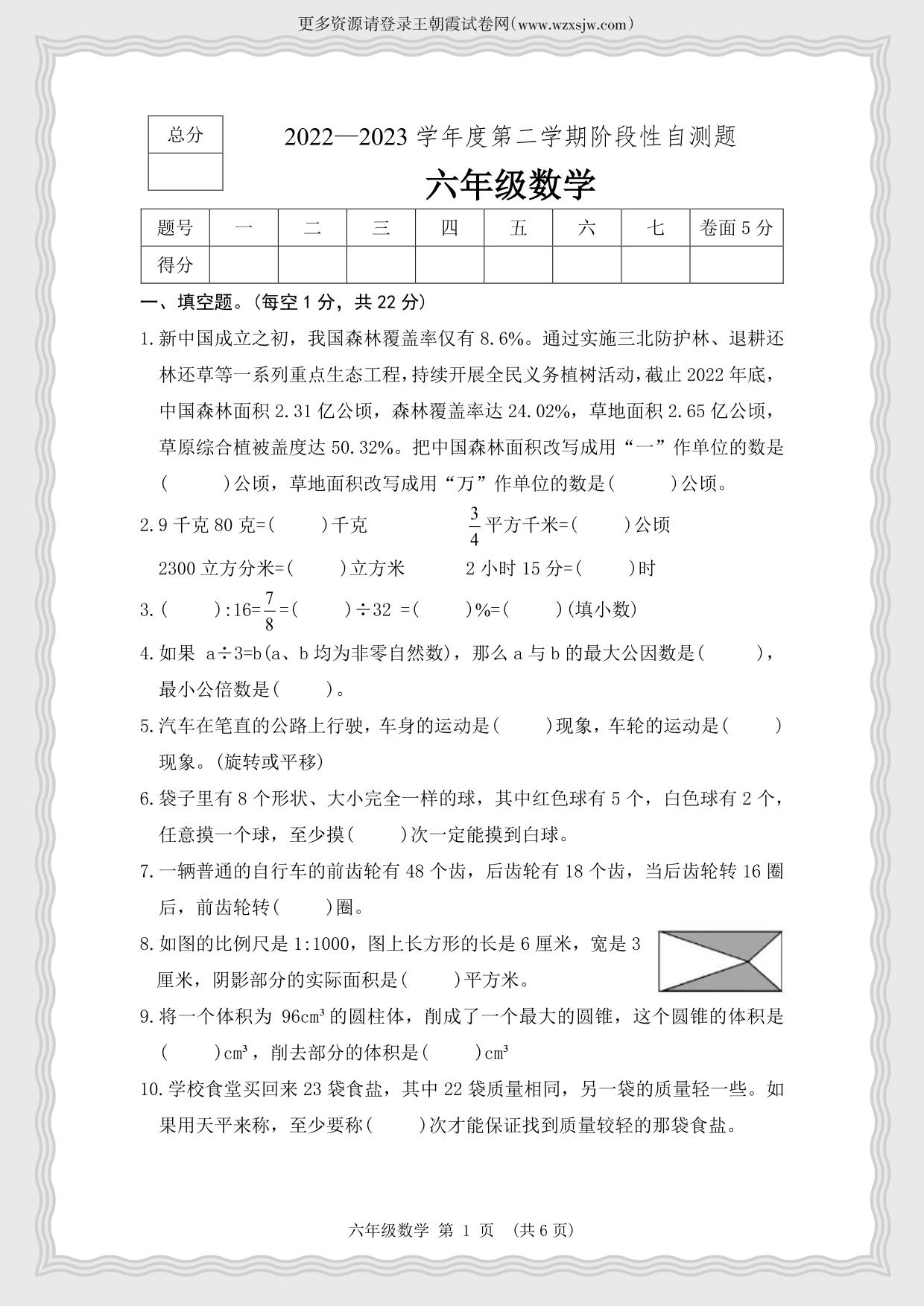 河北省保定市定州市2022-2023学年度第二学期阶段性自测期中试题六年级数学(冀教版)