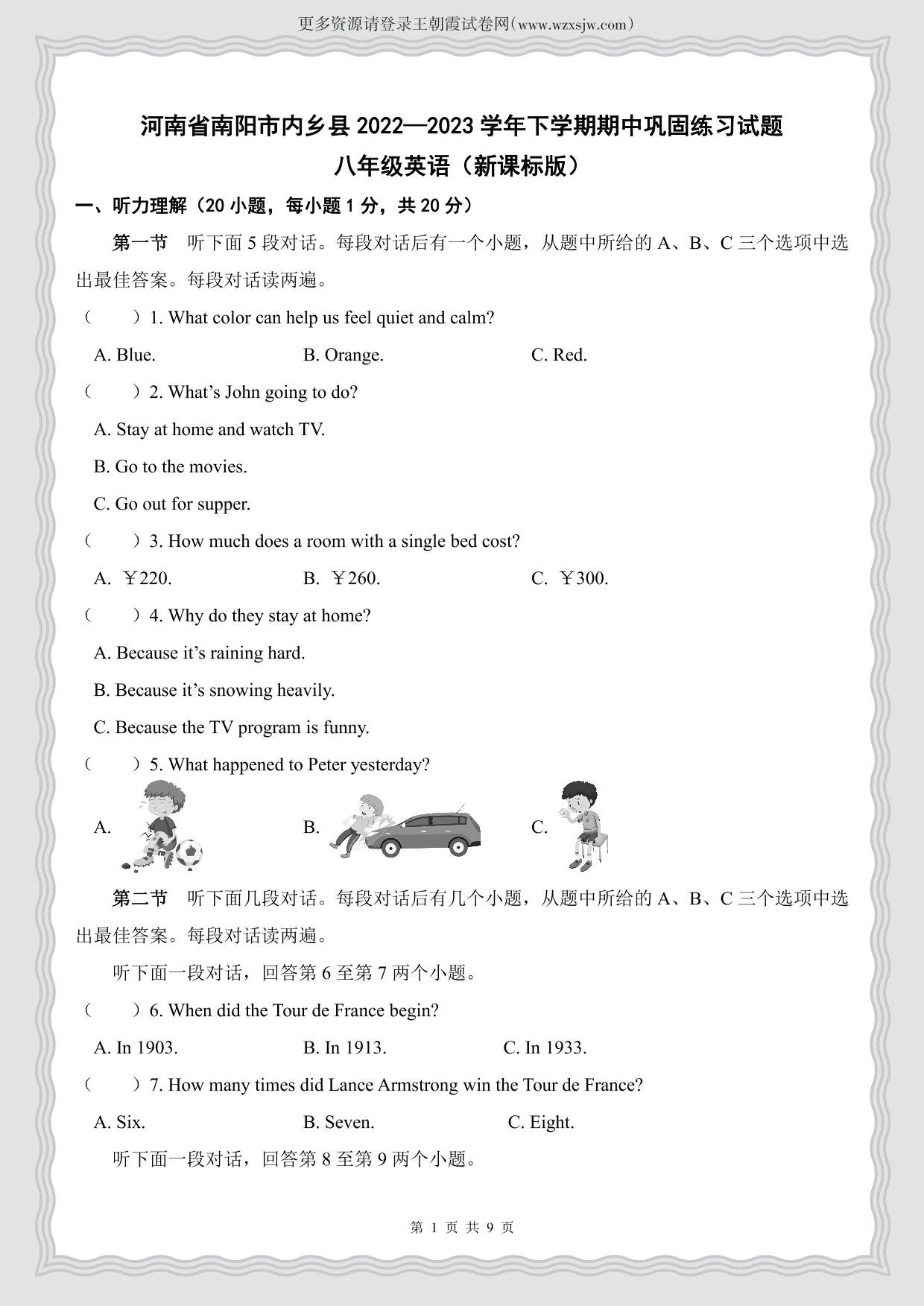 河南省南阳市内乡县2022—2023学年下学期期中巩固练习试题八年级英语(新课标版)【无听力音频】