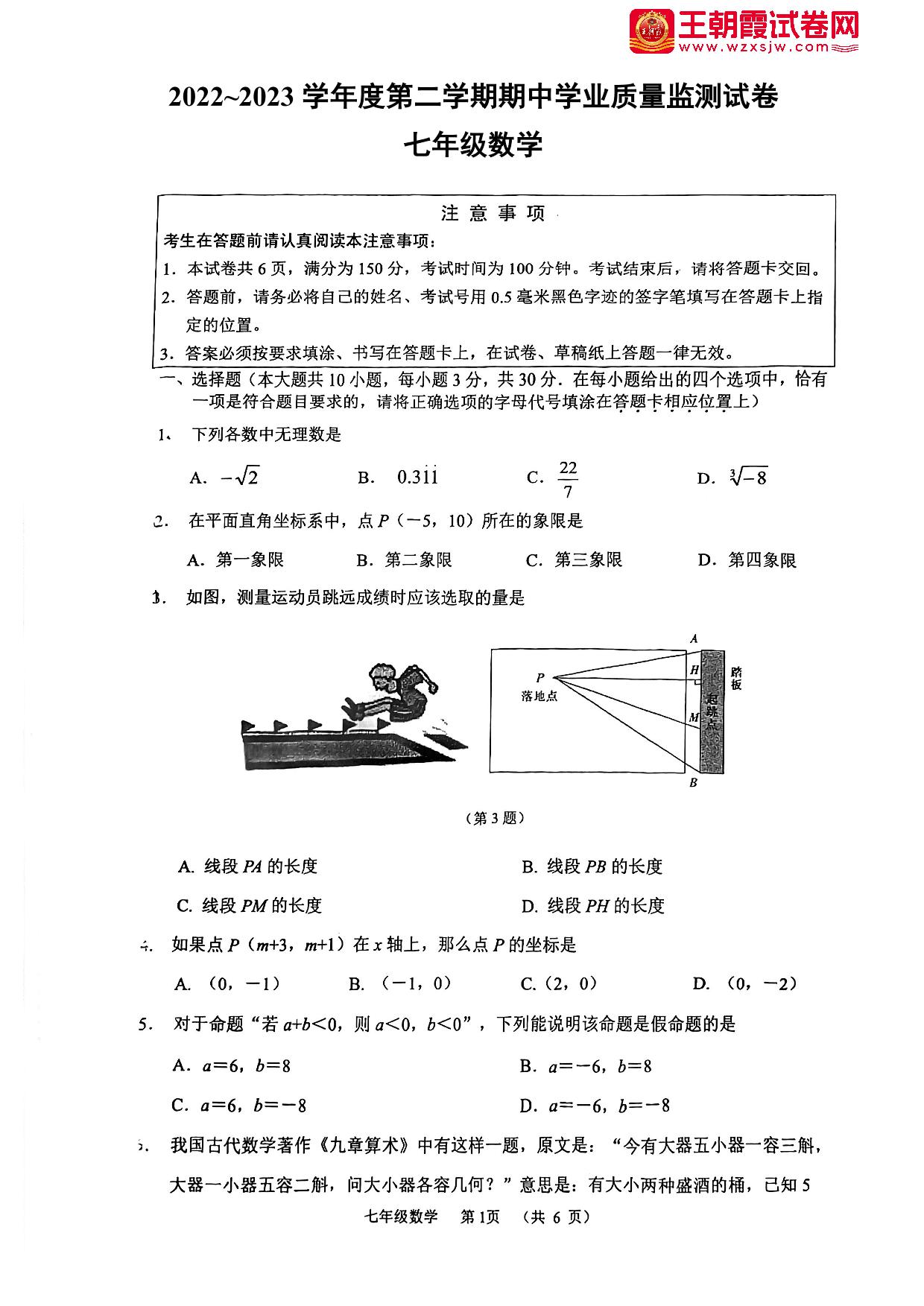 江苏省南通市崇川区、如皋市2022-2023学年第二学期期中联考七年级数学(人教版)