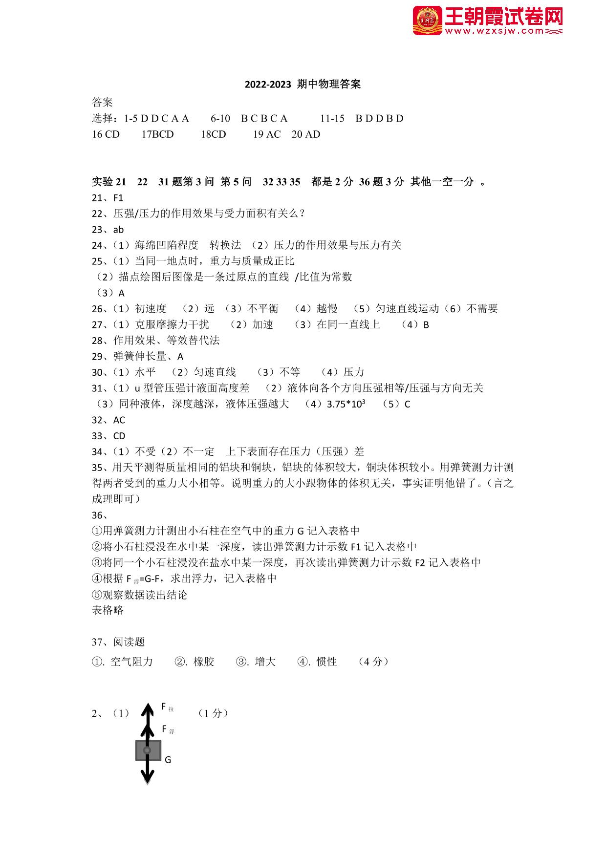 北京市朝阳区陈经纶中学2022-2023学年第二学期期中试卷八年级物理(人教版)