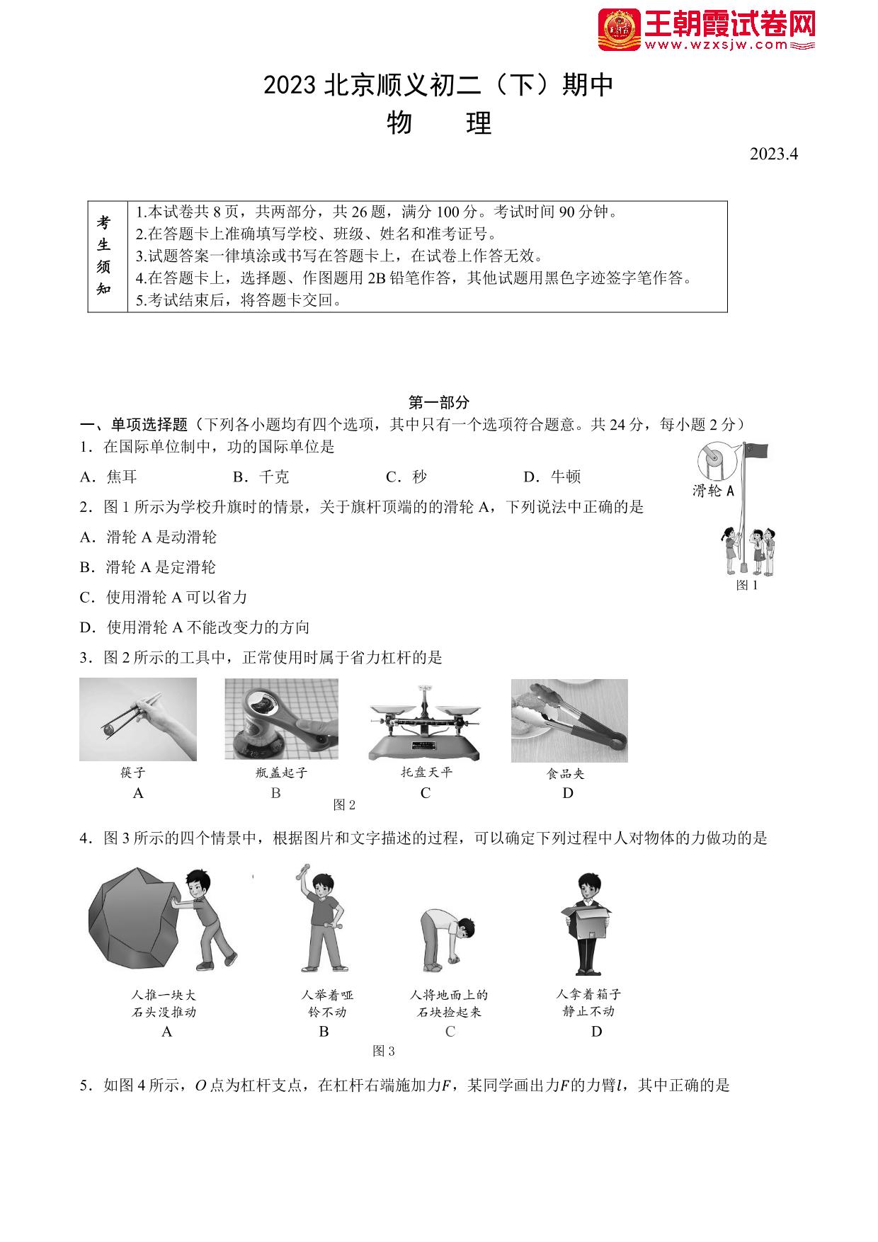 北京市顺义区2022-2023学年第二学期期中试卷八年级物理(课改版)