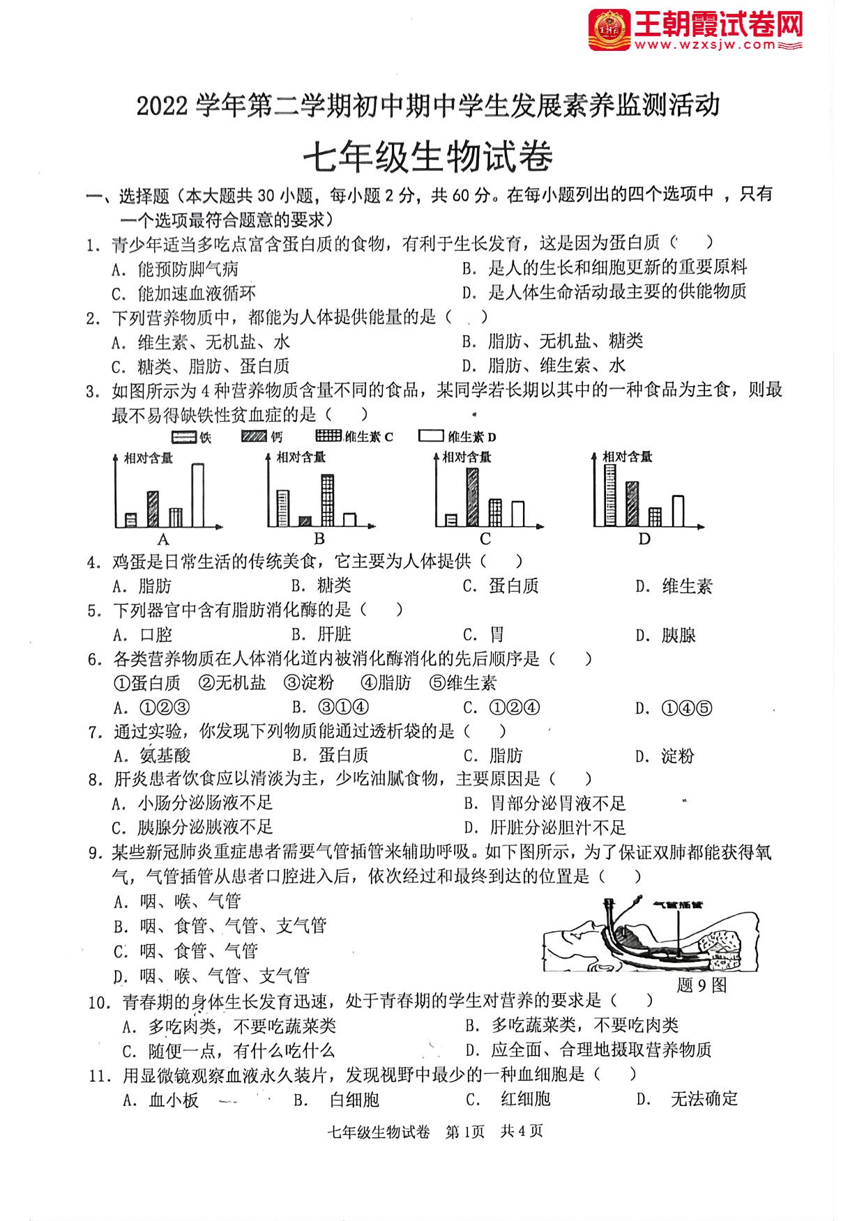 广东省清远市英德市2022-2023学年下学期期中试题七年级生物(北师版)