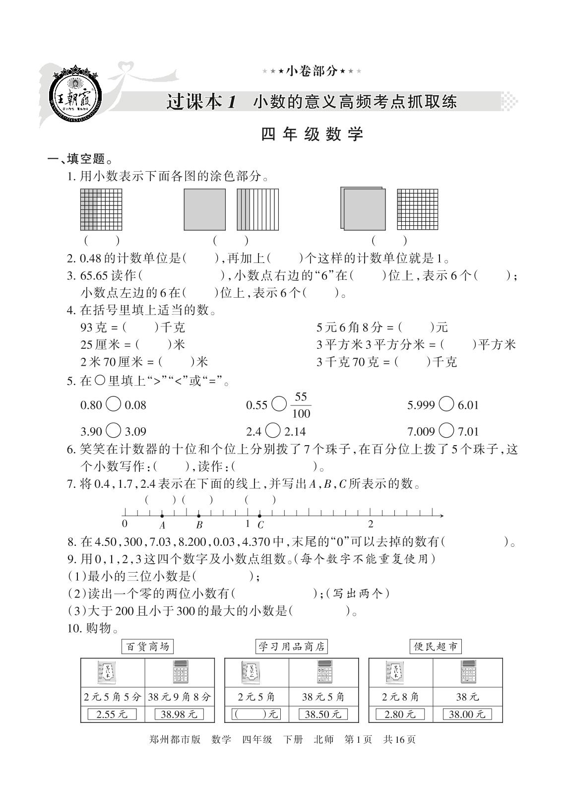 王朝霞期末过课本四年级下册数学(北师版)_R210804134026【0】
