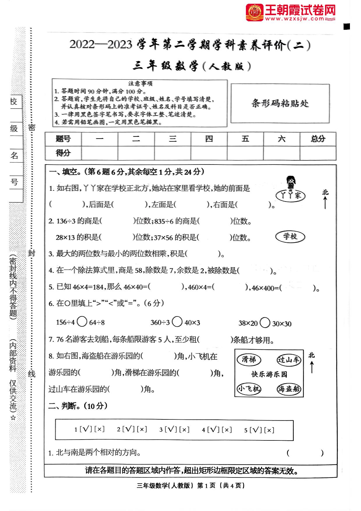 河北省邢台市临城县2022-2023学年第二学期期中学科素养评价三年级数学(人教版)