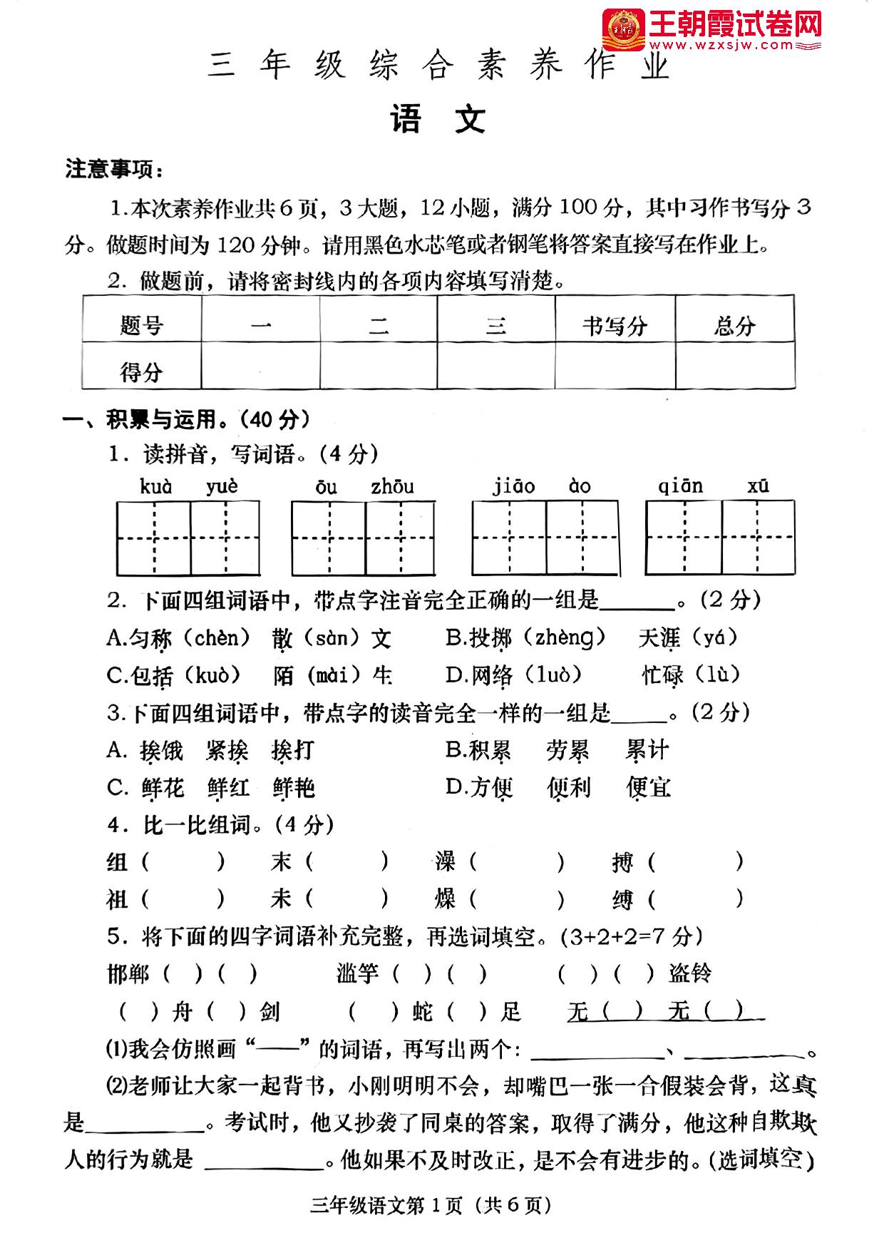 河南省南阳市社旗县2022—2023学年第二学期期中综合素养试题三年级语文(人教版)