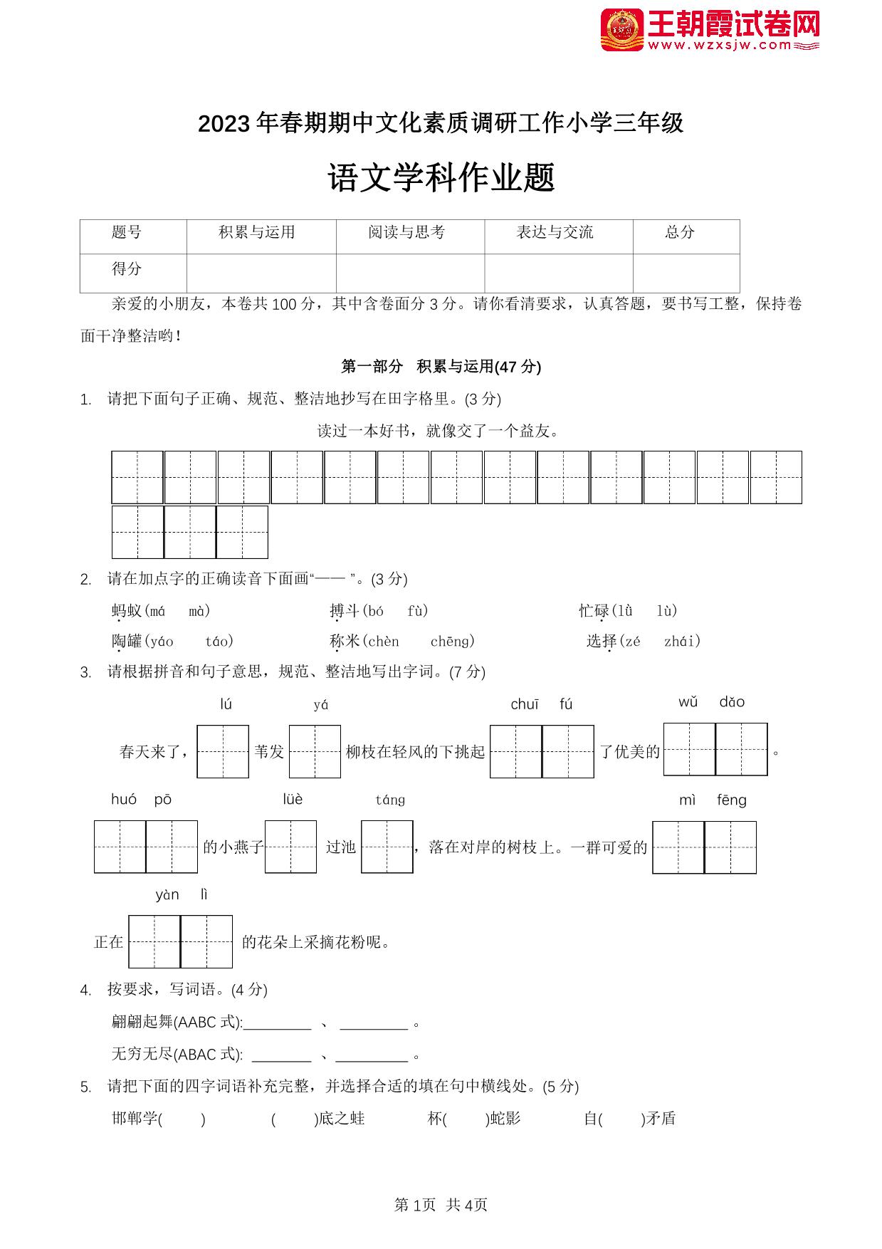 河南省南阳市方城县2022—2023学年第二学期期中试卷三年级语文(人教版)