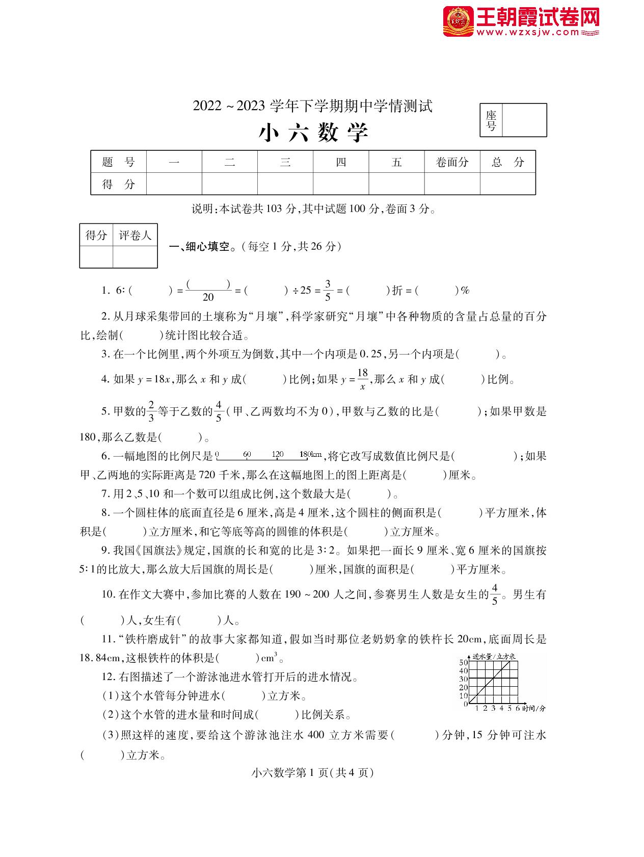 河南省平顶山市郏县2022—2023学年下学期期中试题六年级数学(苏教版)