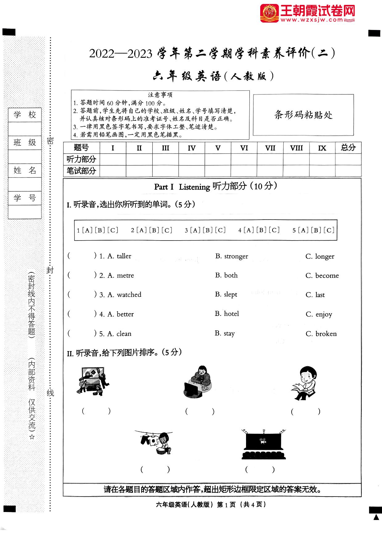 河北省邢台市临城县2022-2023学年第二学期期中学科素养评价六年级英语(人教PEP版)【无听力音频】