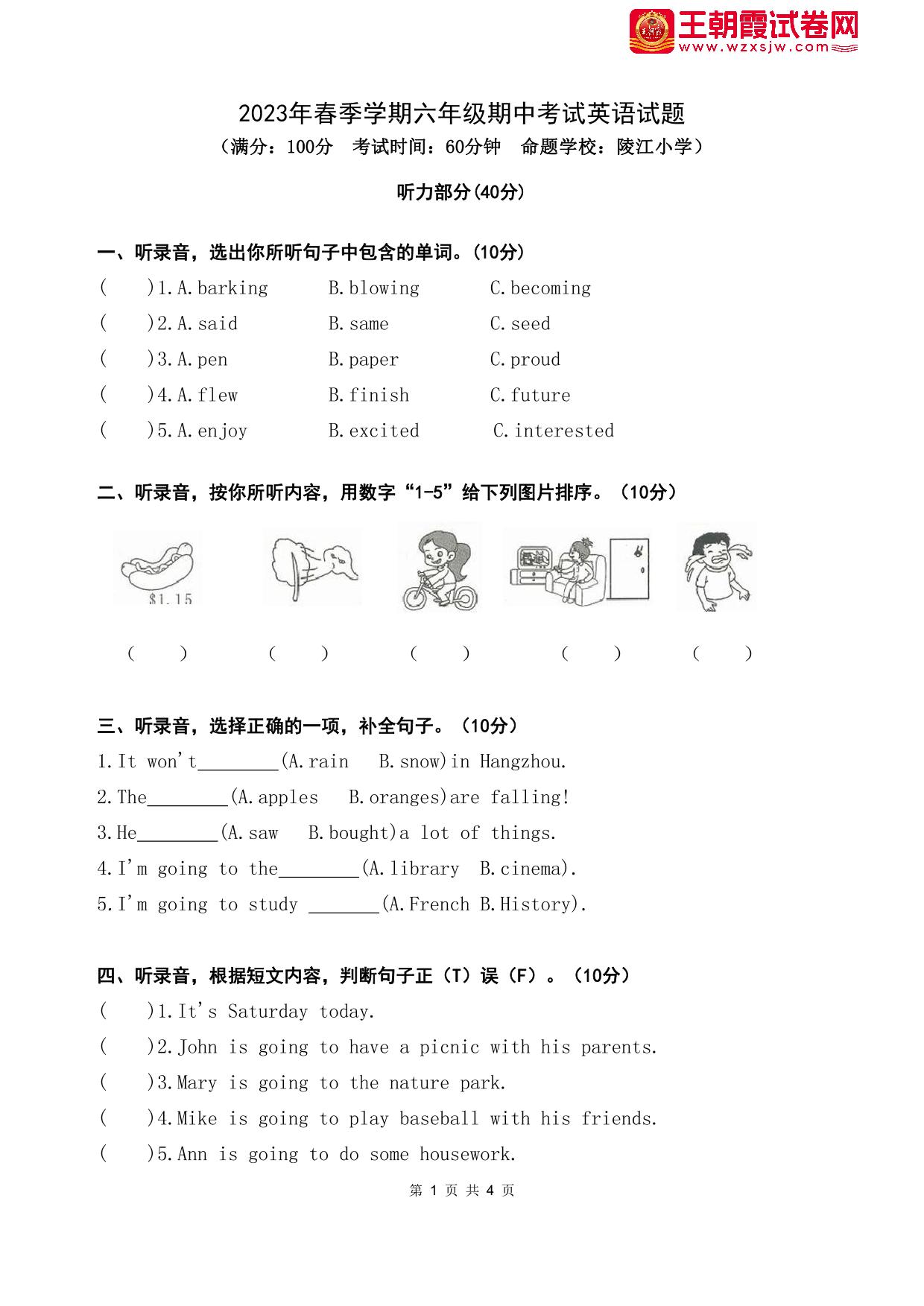 四川省广元市苍溪县2022-2023学年下学期期中考试六年级英语(外研版)