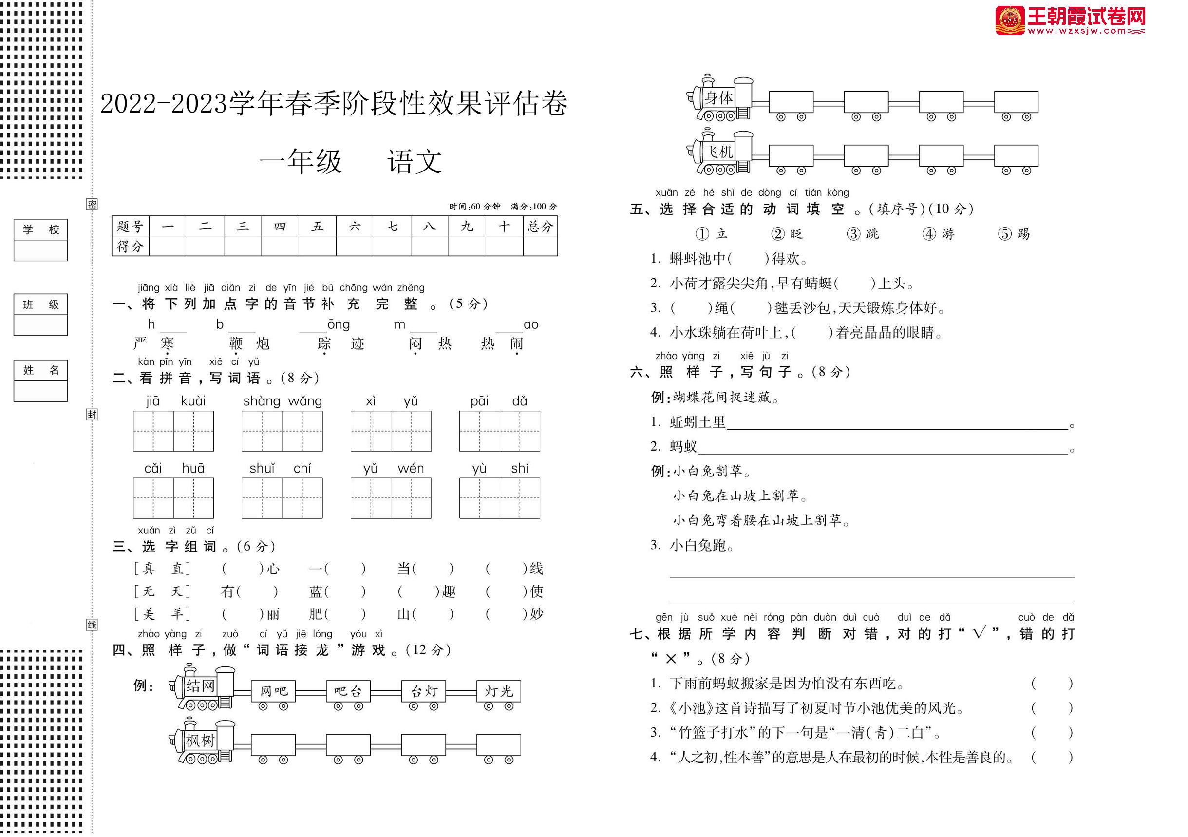 一年级语文人教版下册月考卷