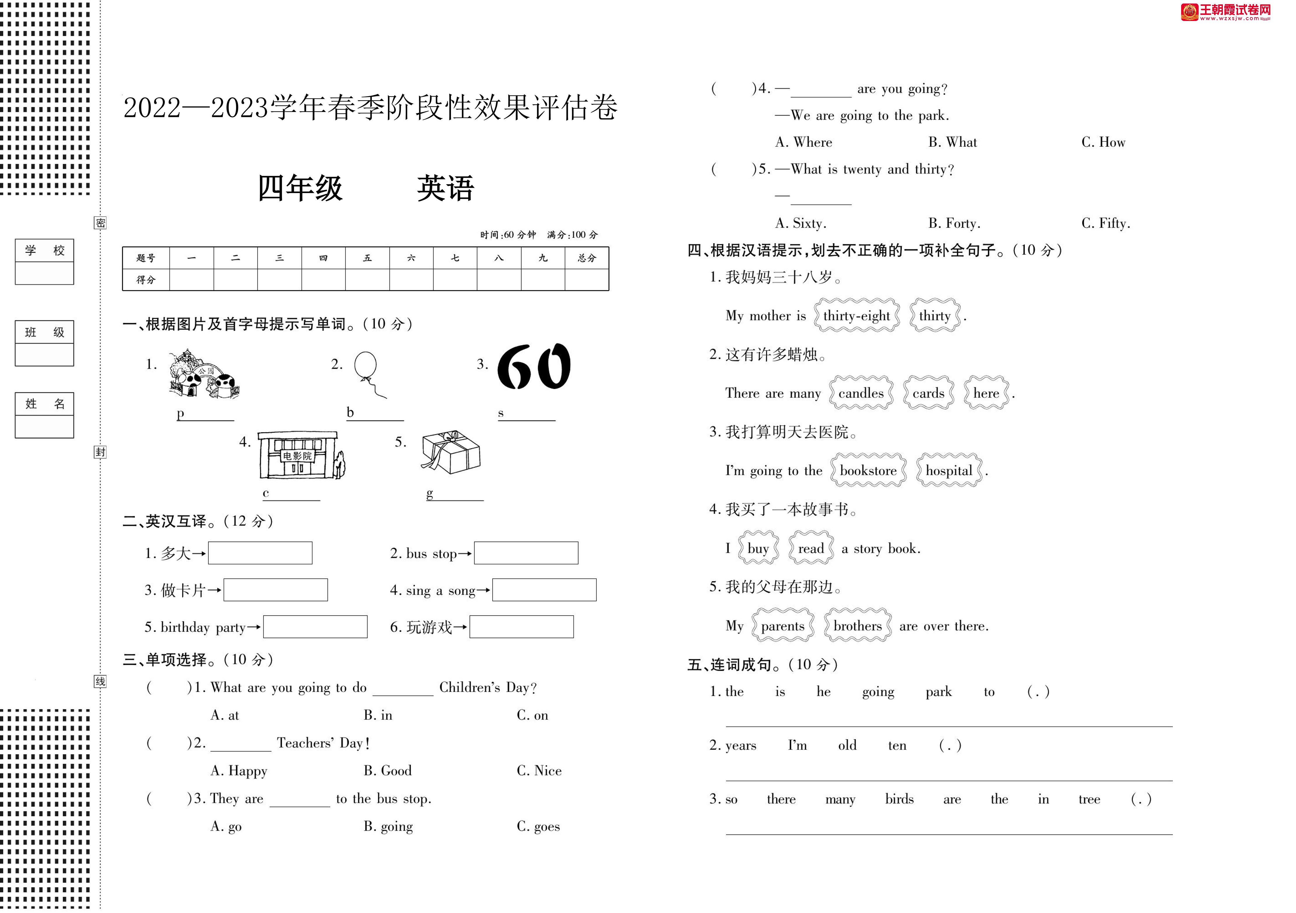 甘肃省定西市岷县西寨九年制学校2022-2023学年下学期第三次月考试题四年级英语(陕旅版)