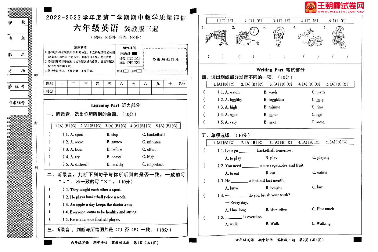 河北省邢台市威县2022-2023学年度第二学期期中教学质量评估六年级英语(冀教版)【无听力音频】