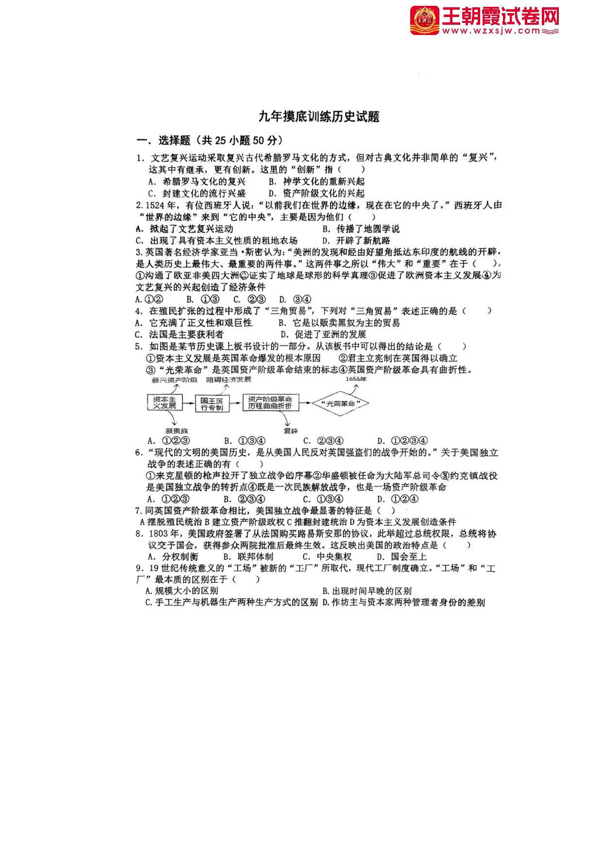 辽宁省鞍山市第二十六中学2022-2023学年下学期2月月考试卷九年级历史(人教版)