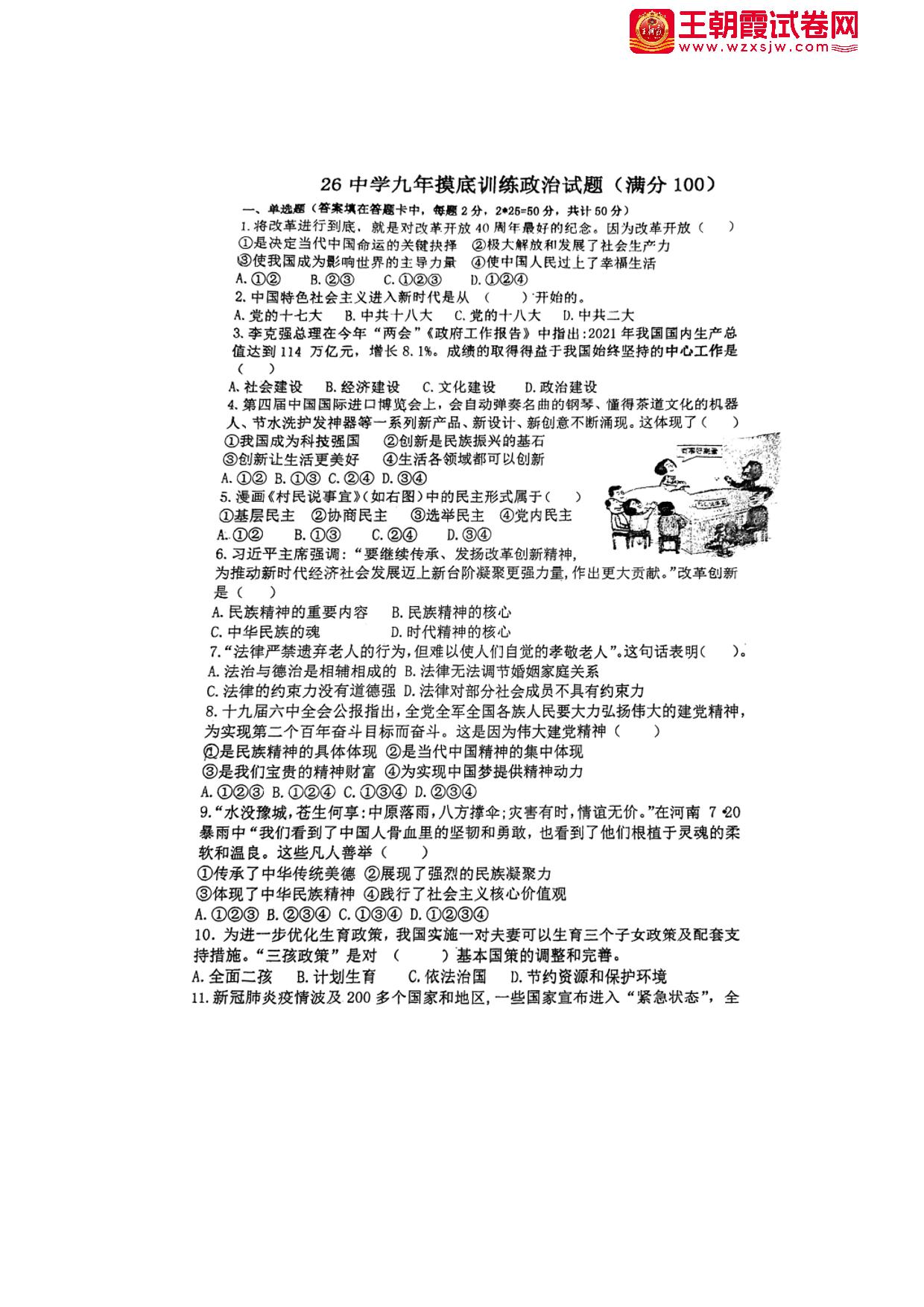 九年级道德与法治人教版下册月考卷