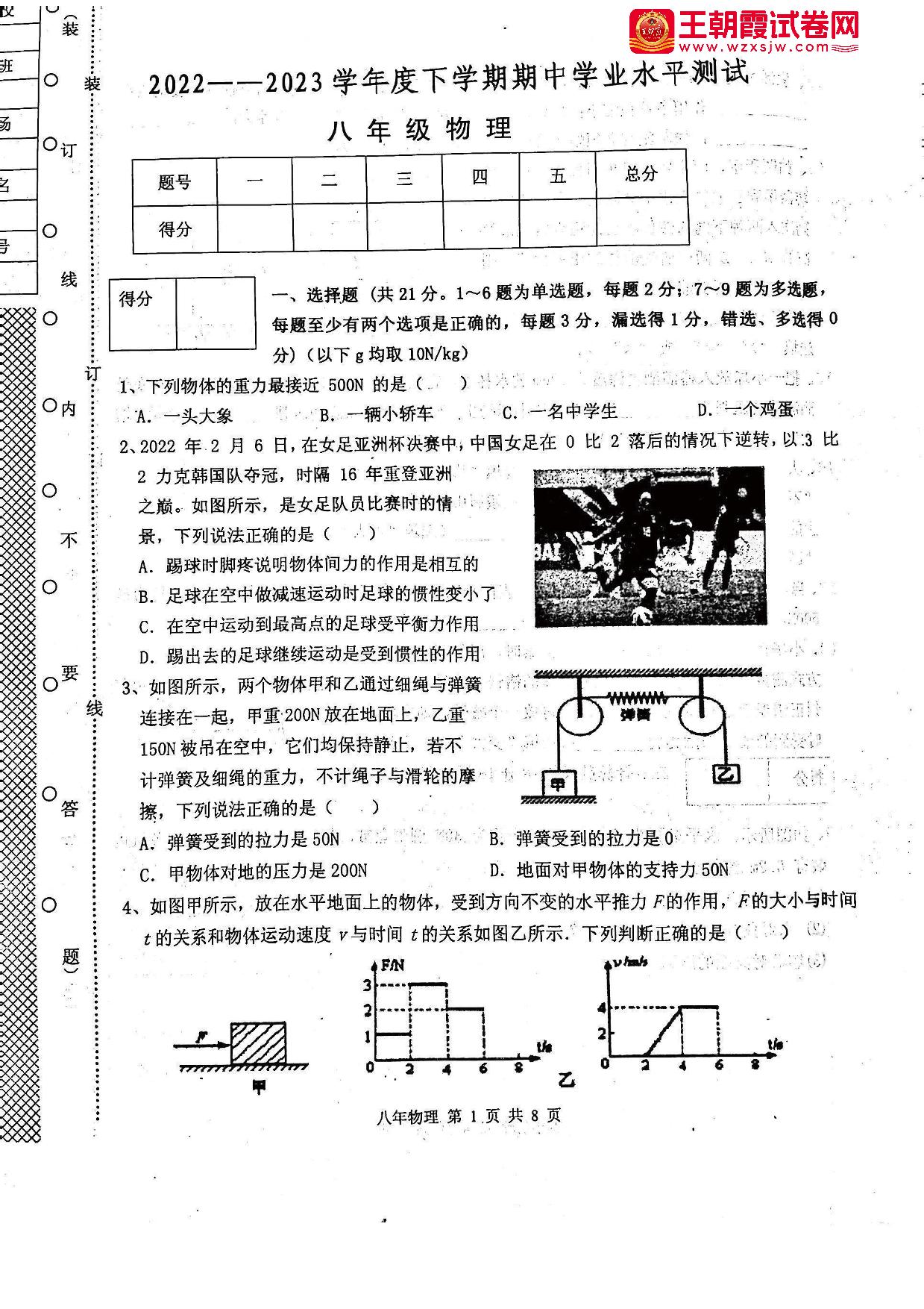 八年级物理人教版下册期中卷