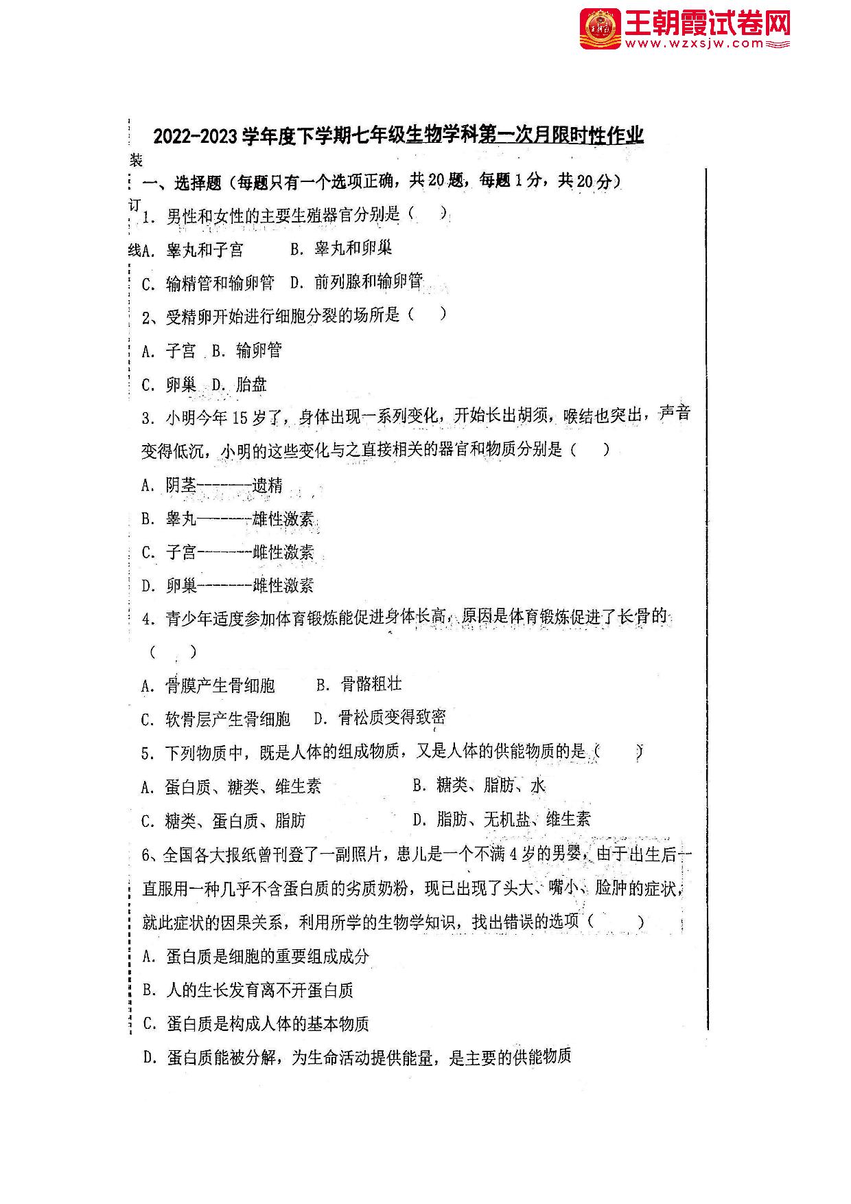 辽宁省沈阳市南昌初级中学2022-2023学年下学期第一次月考试卷七年级生物(人教版)