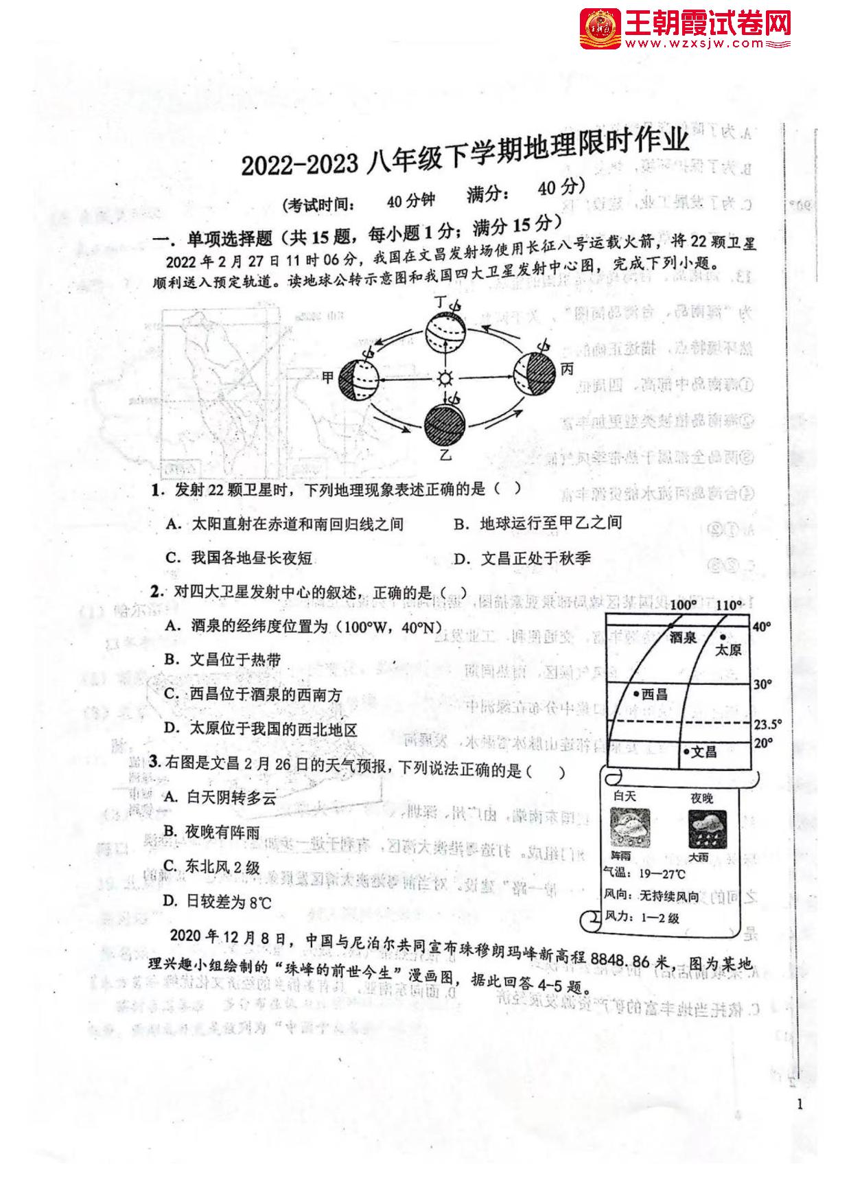 辽宁省沈阳市虹桥初级中学2022-2023学年下学期4月月考试题八年级地理(人教版)
